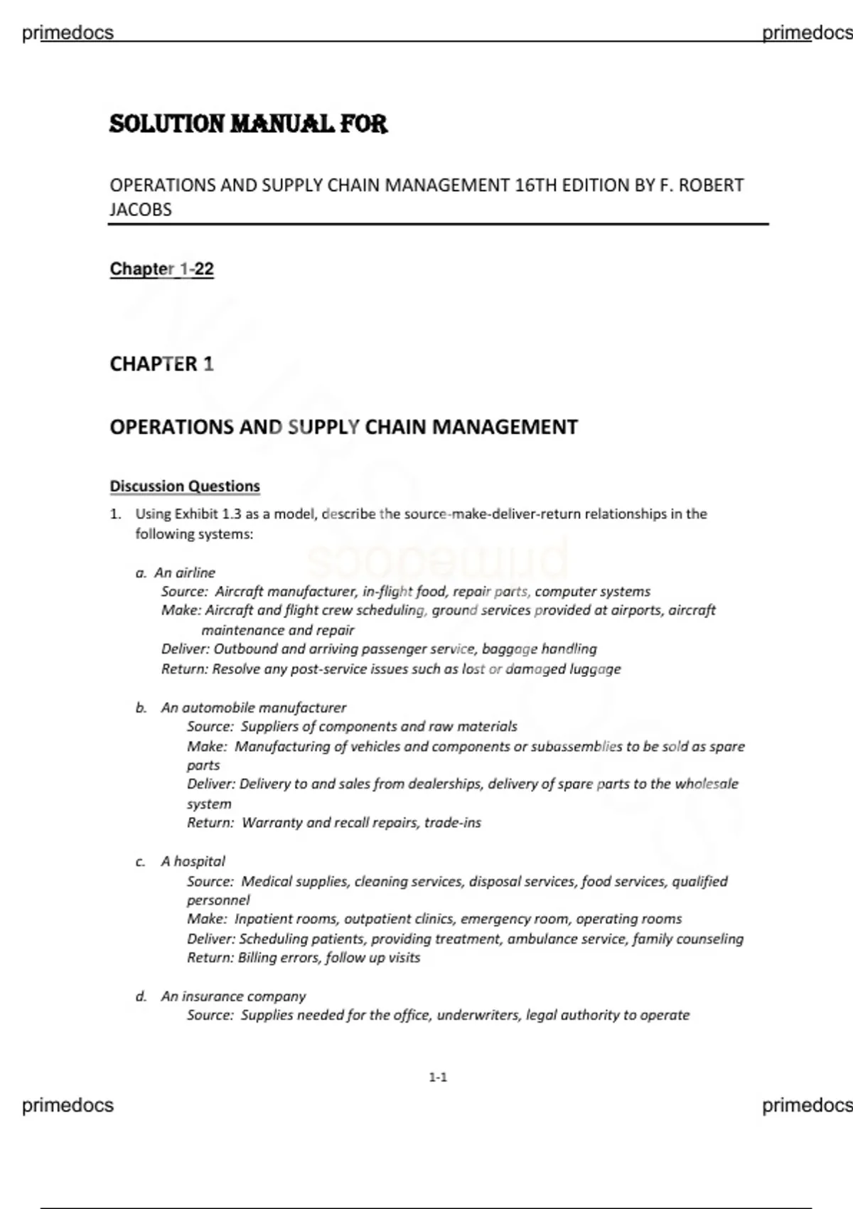 1. Using Exhibit 1.3 as a model, describe the source-make-deliver-return relationships in the