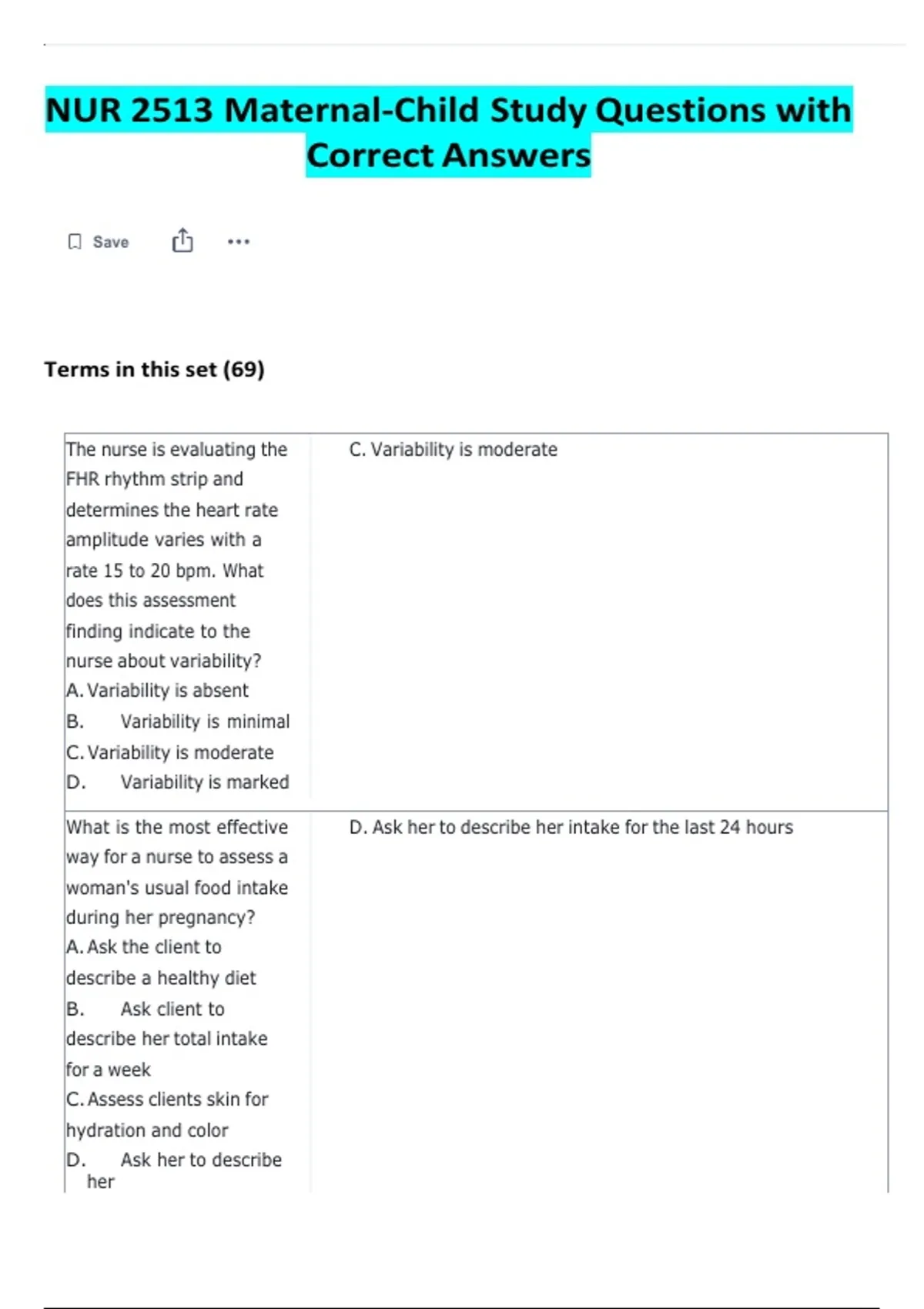 NUR 2513 Maternal-Child Study Questions with Correct Answers
