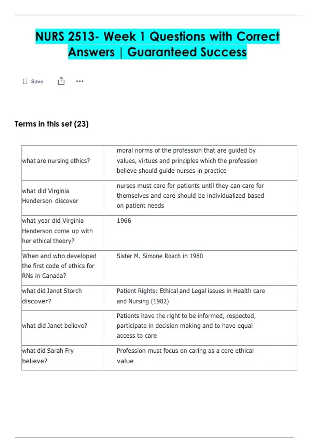 NURS 2513- Week 1 Questions with Correct Answers | Guaranteed Success