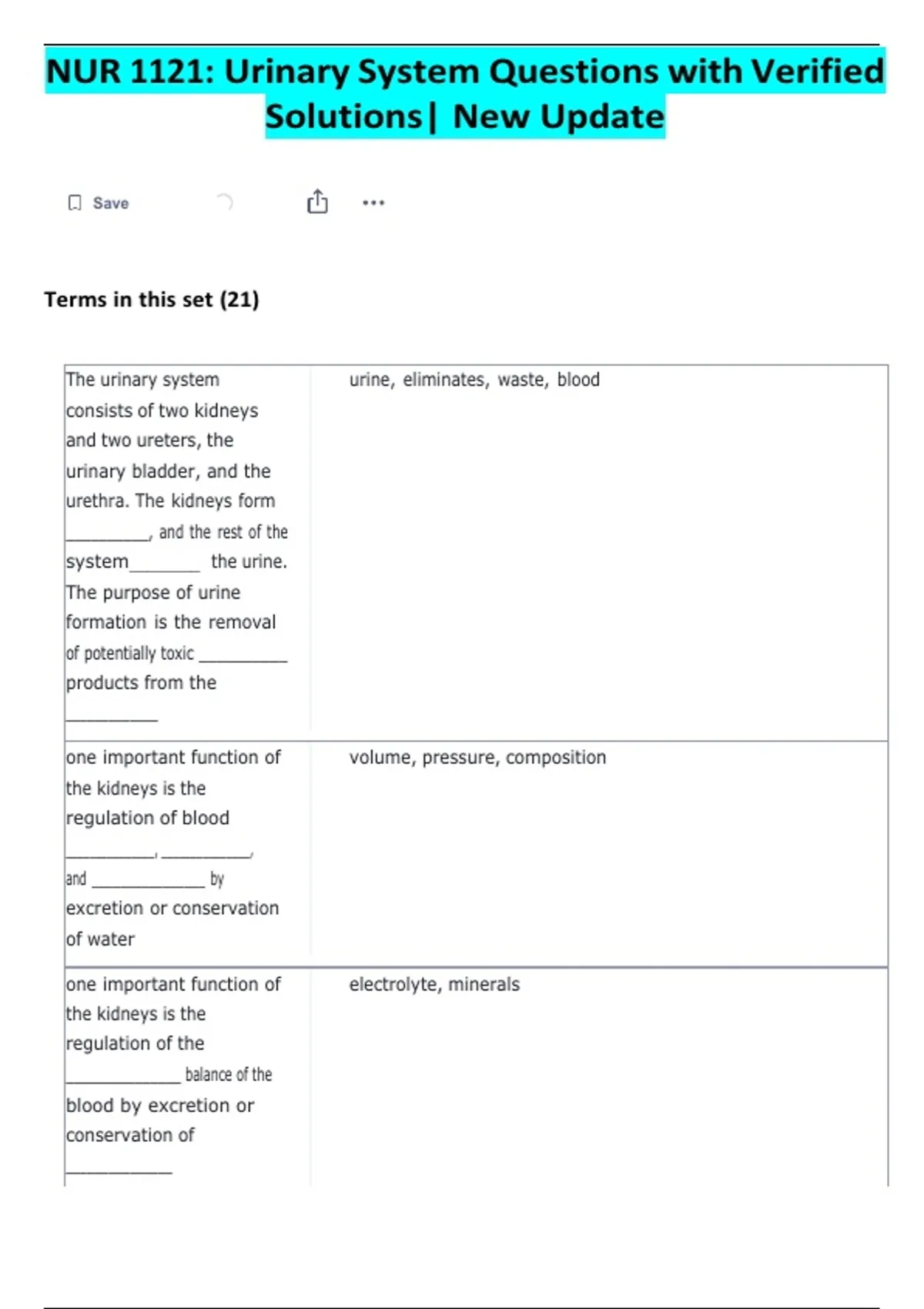NUR 1121: Urinary System Questions with Verified