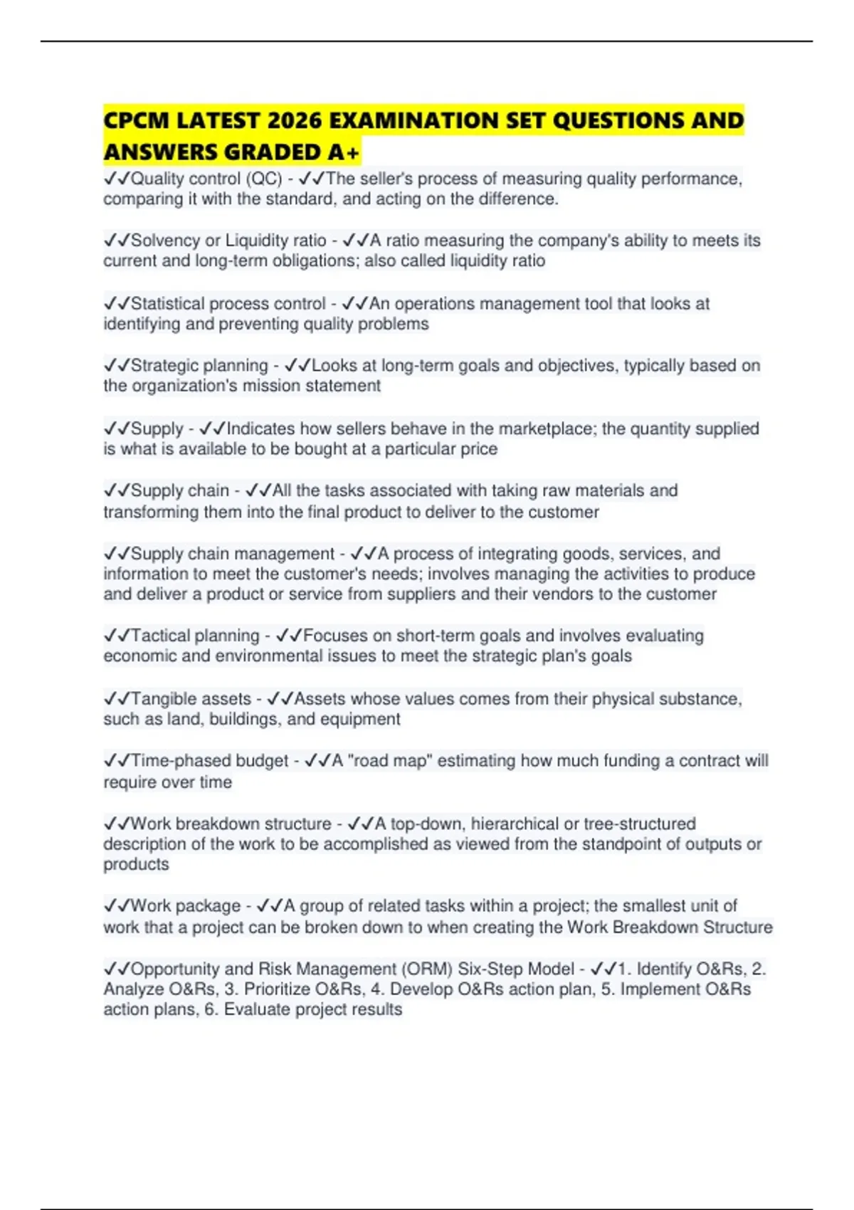 ✔✔Quality control (QC) - ✔✔The seller's process of measuring quality performance,