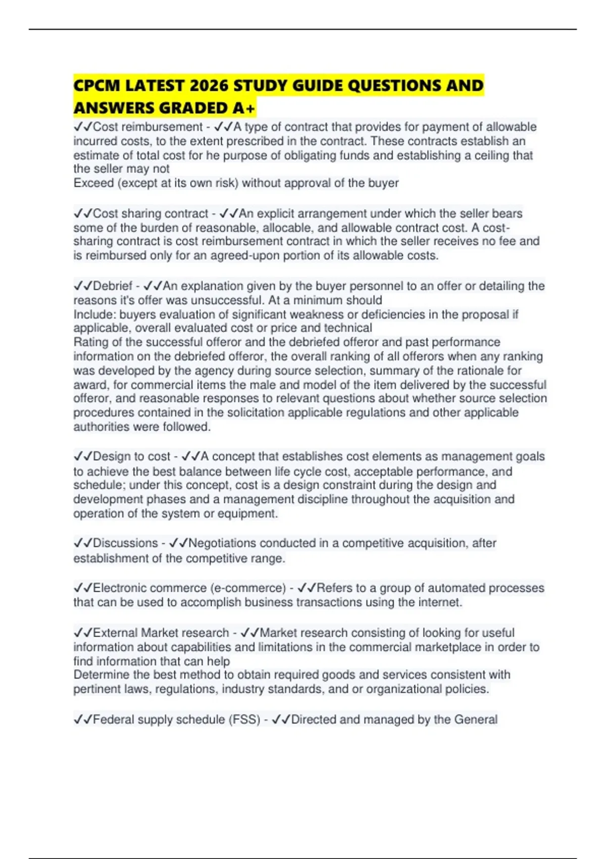 ✔✔Framework pricing arrangement - ✔✔A contract that is definitive in all respects