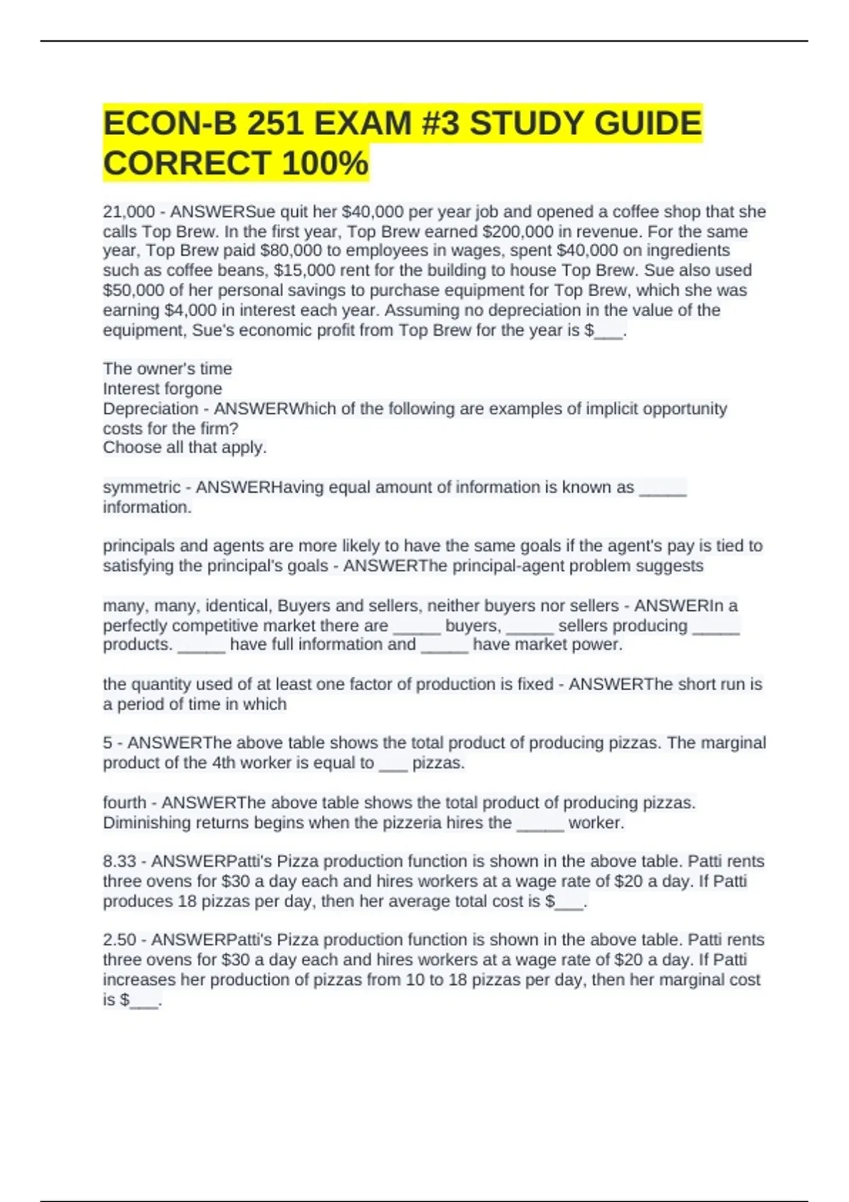 ECON-B 251 EXAM #3 STUDY GUIDE CORRECT 100%