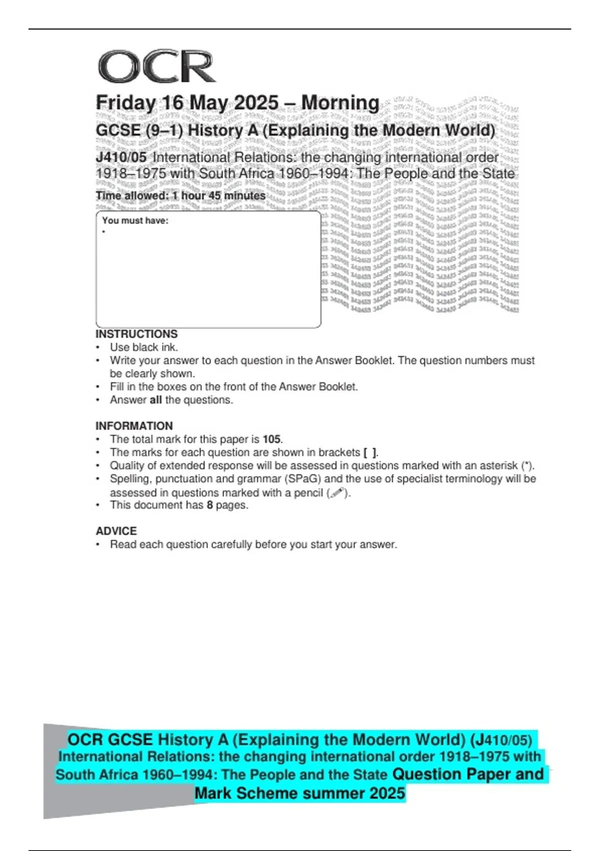 OCR GCSE History A (Explaining the Modern World) (J410/05)