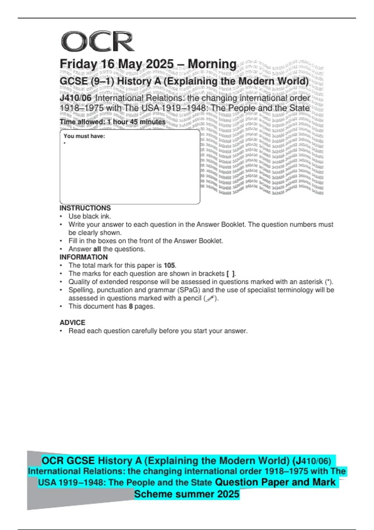 OCR GCSE History A (Explaining the Modern World) (J410/06)