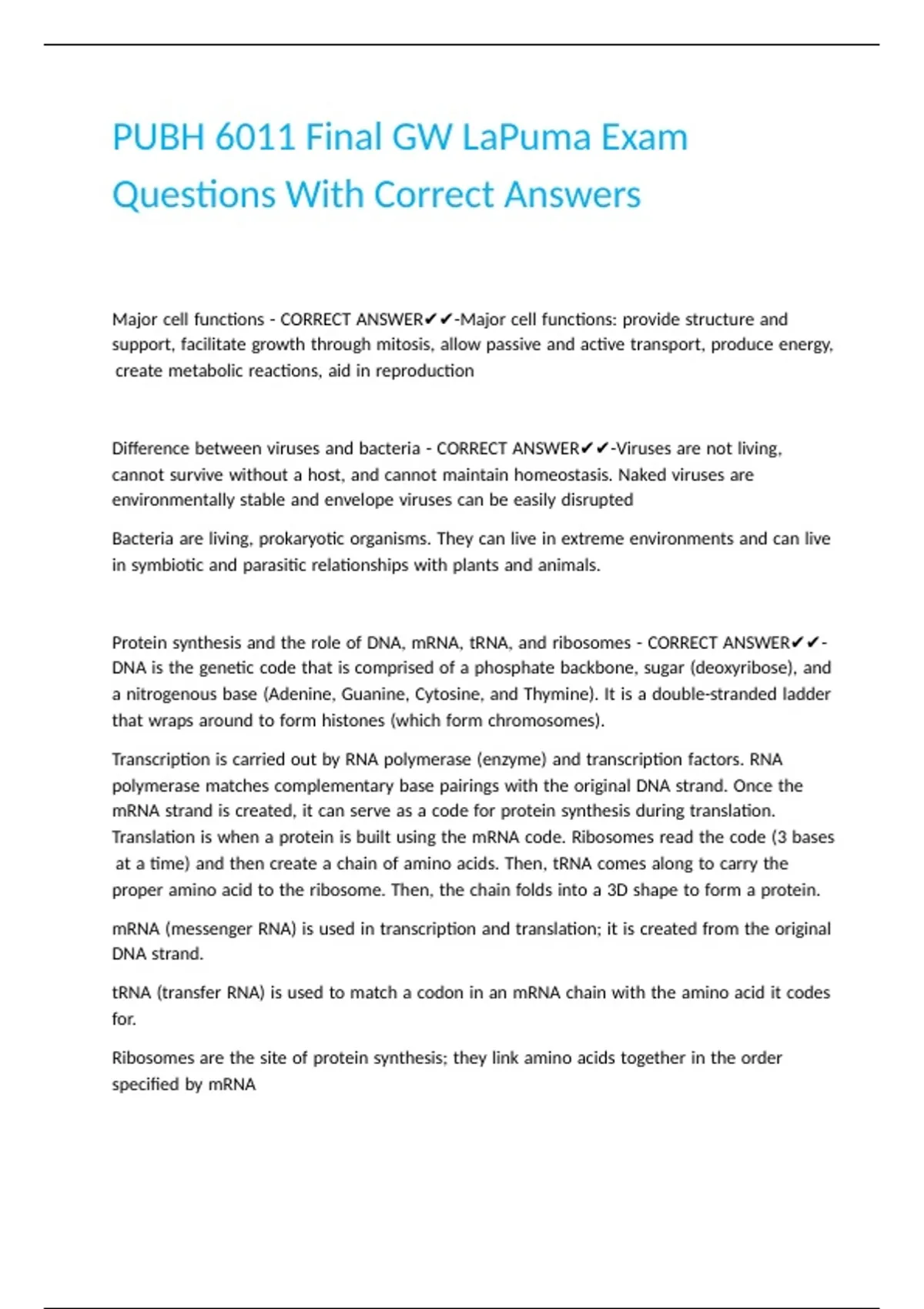 Protein |synthesis |and |the |role |of |DNA, |mRNA, |tRNA, |and |ribosomes |- |CORRECT |ANSWER✔✔-