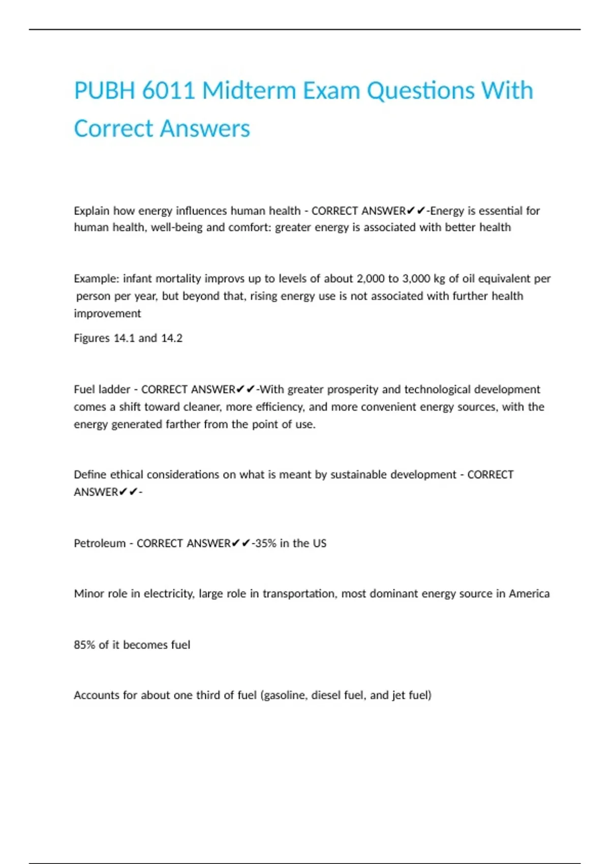PUBH 6011 Midterm Exam Questions With Correct Answers