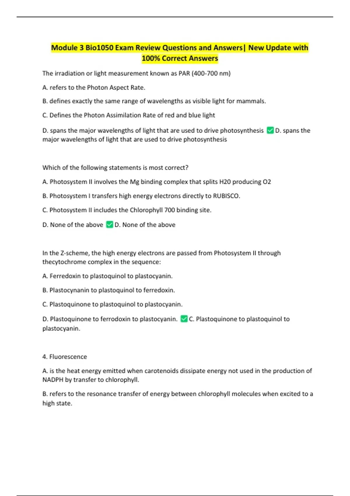 Module 3 Bio1050 Exam Review Questions and Answers| New Update with