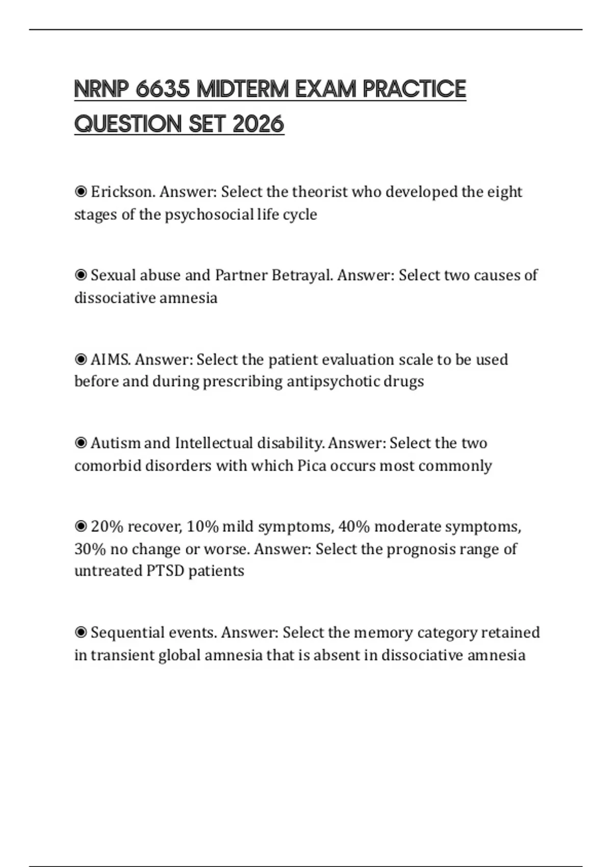 NRNP 6635 MIDTERM EXAM PRACTICE QUESTION SET 2026