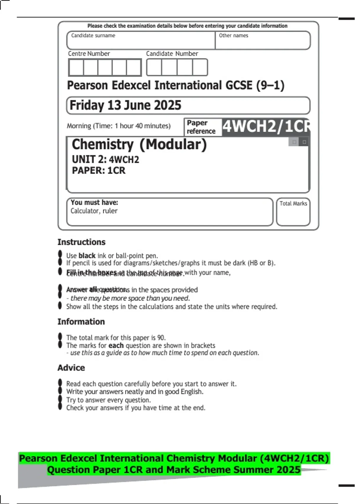 Pearson Edexcel International Chemistry Modular (4WCH2/1CR)