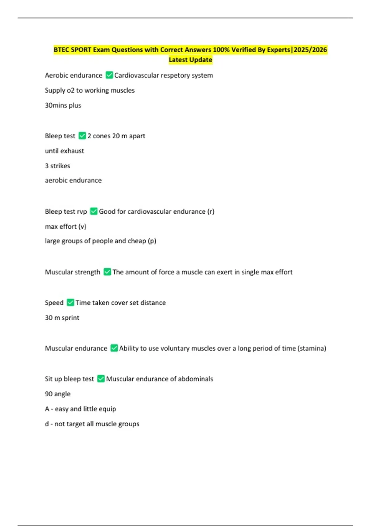 BTEC SPORT Exam Questions with Correct Answers 100% Verified By Experts|2025/2026
