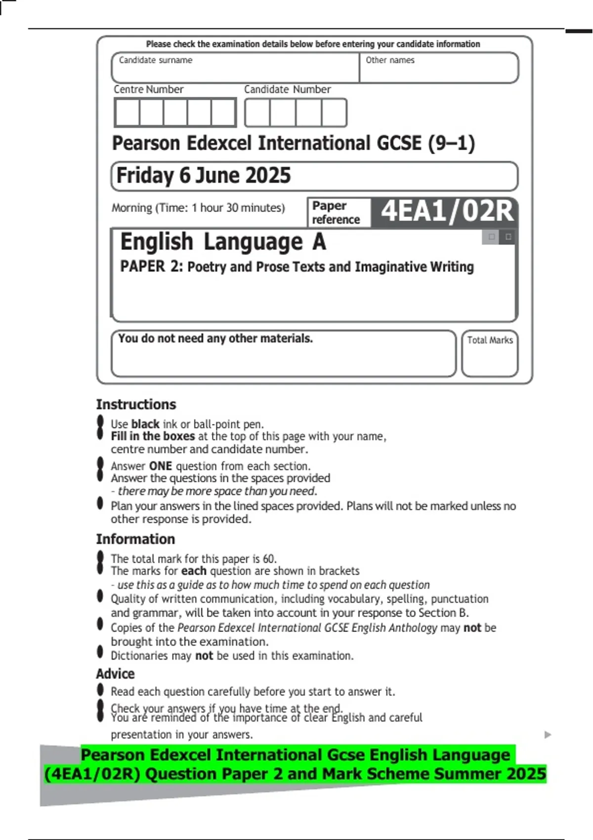 (4EA1/02R) Question Paper 2 and Mark Scheme Summer 2025