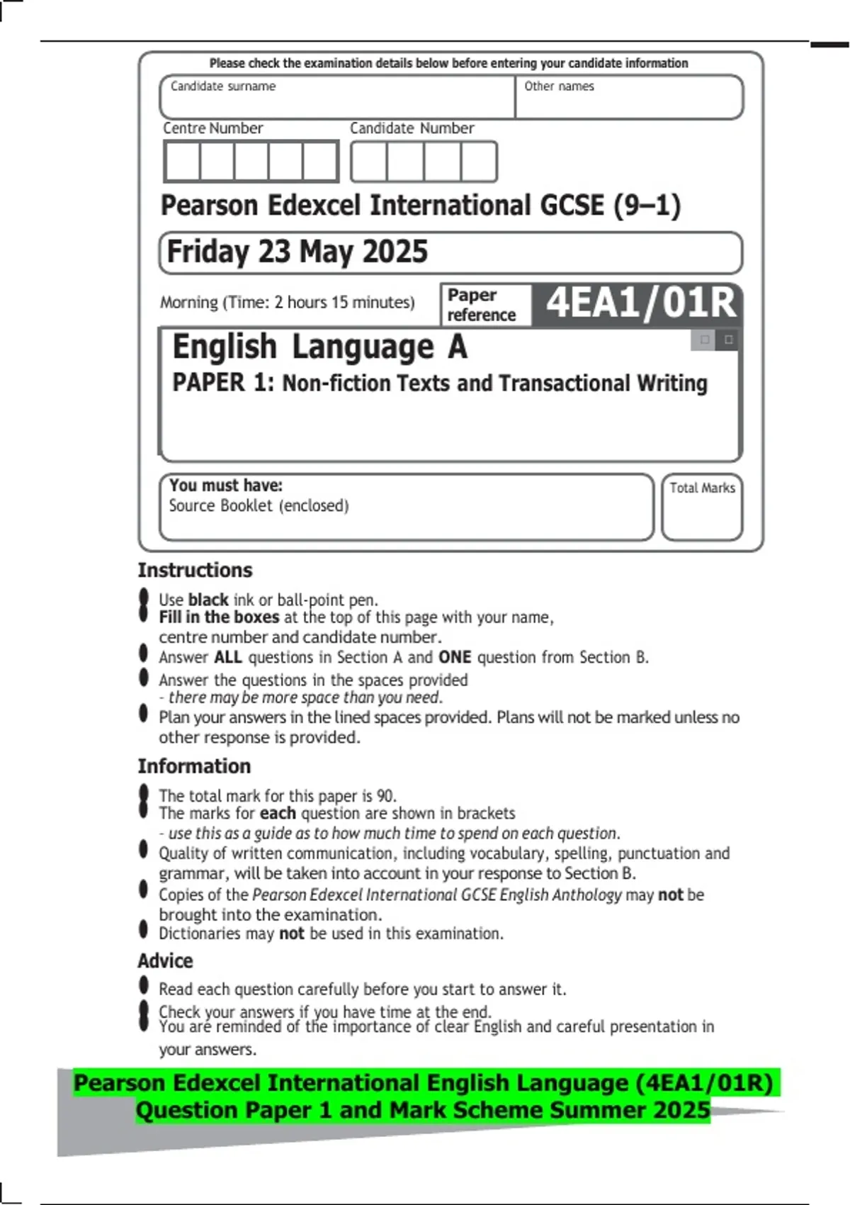 Pearson Edexcel International English Language (4EA1/01R)