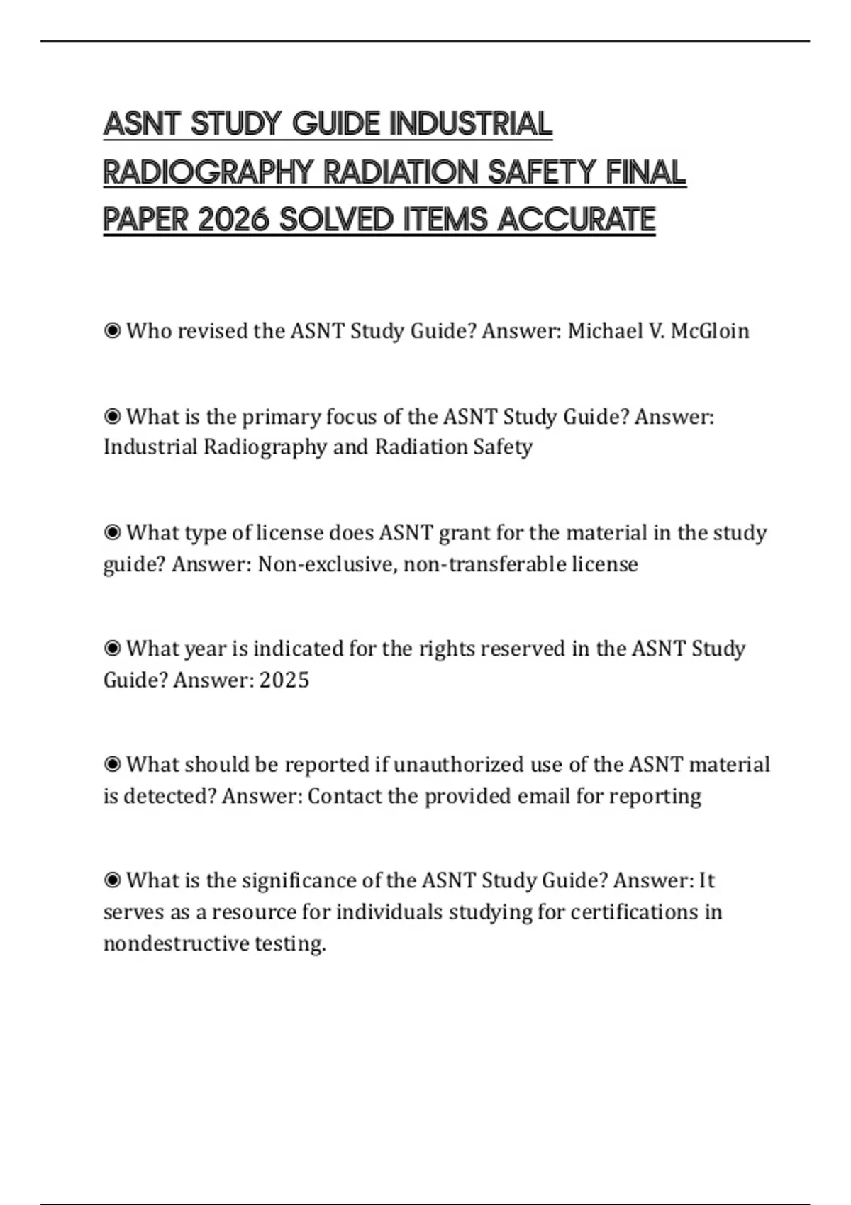 ◉ What is the significance of the ASNT Study Guide? Answer: It