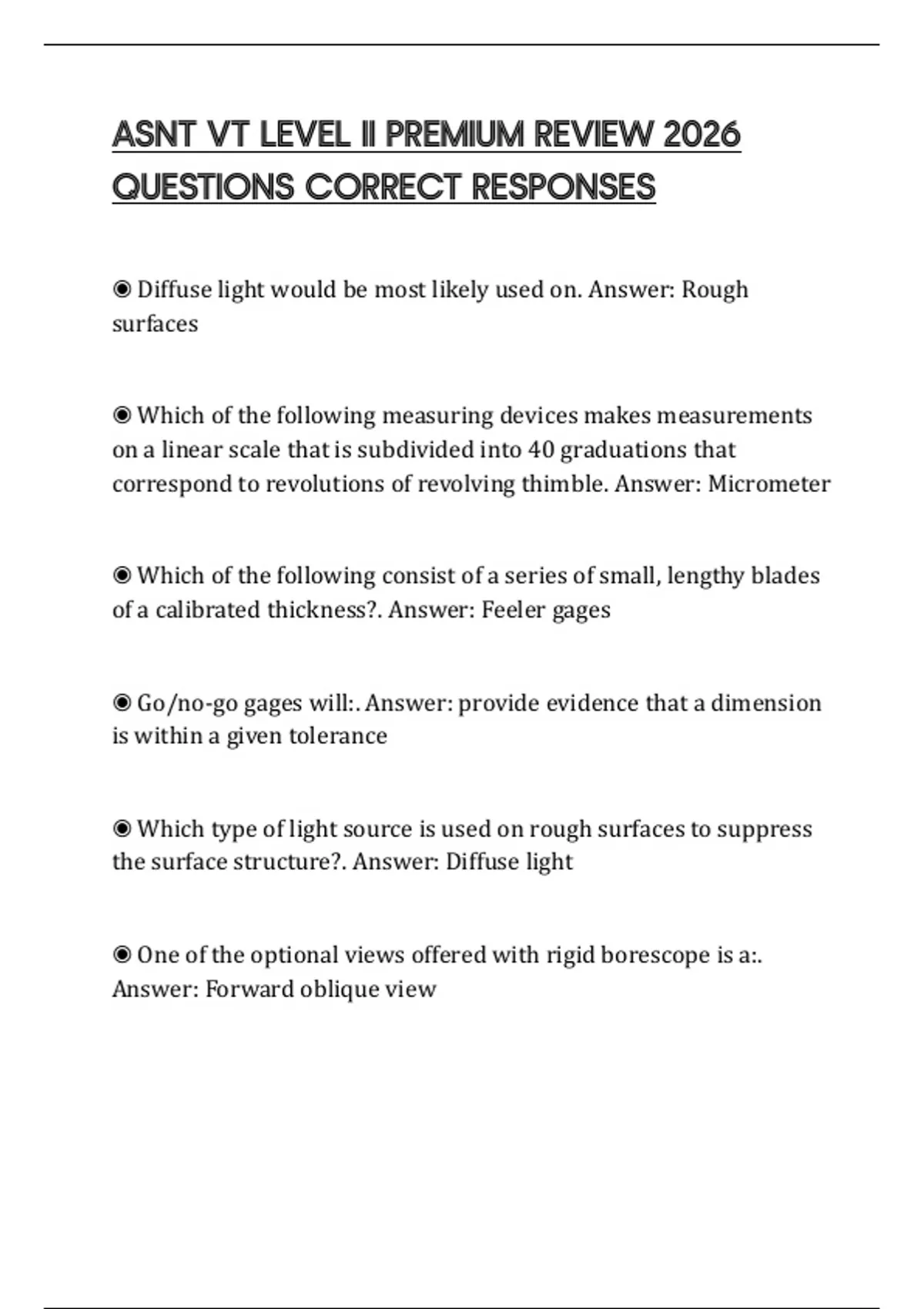 ASNT VT LEVEL II PREMIUM REVIEW 2026 QUESTIONS CORRECT RESPONSES
