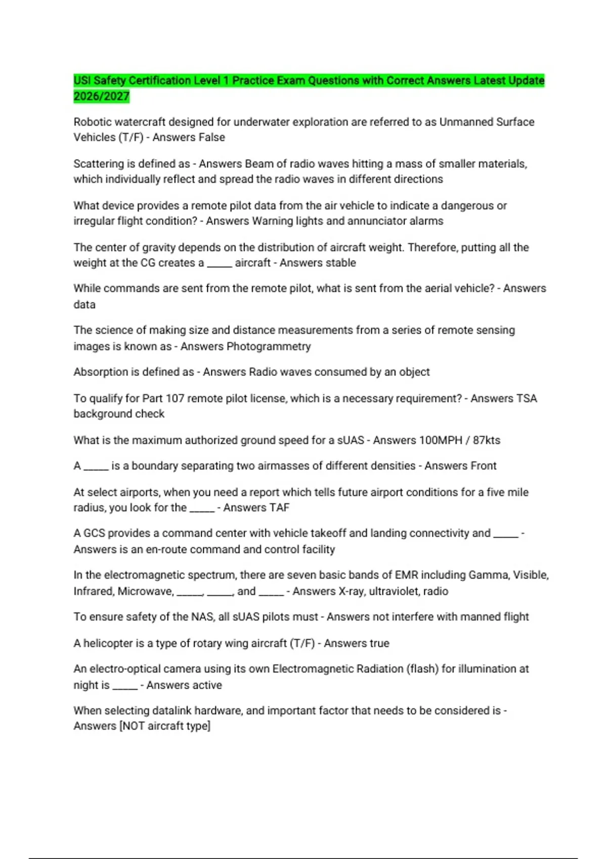 any obstacles or hazards, including manned aircraft - Answers true