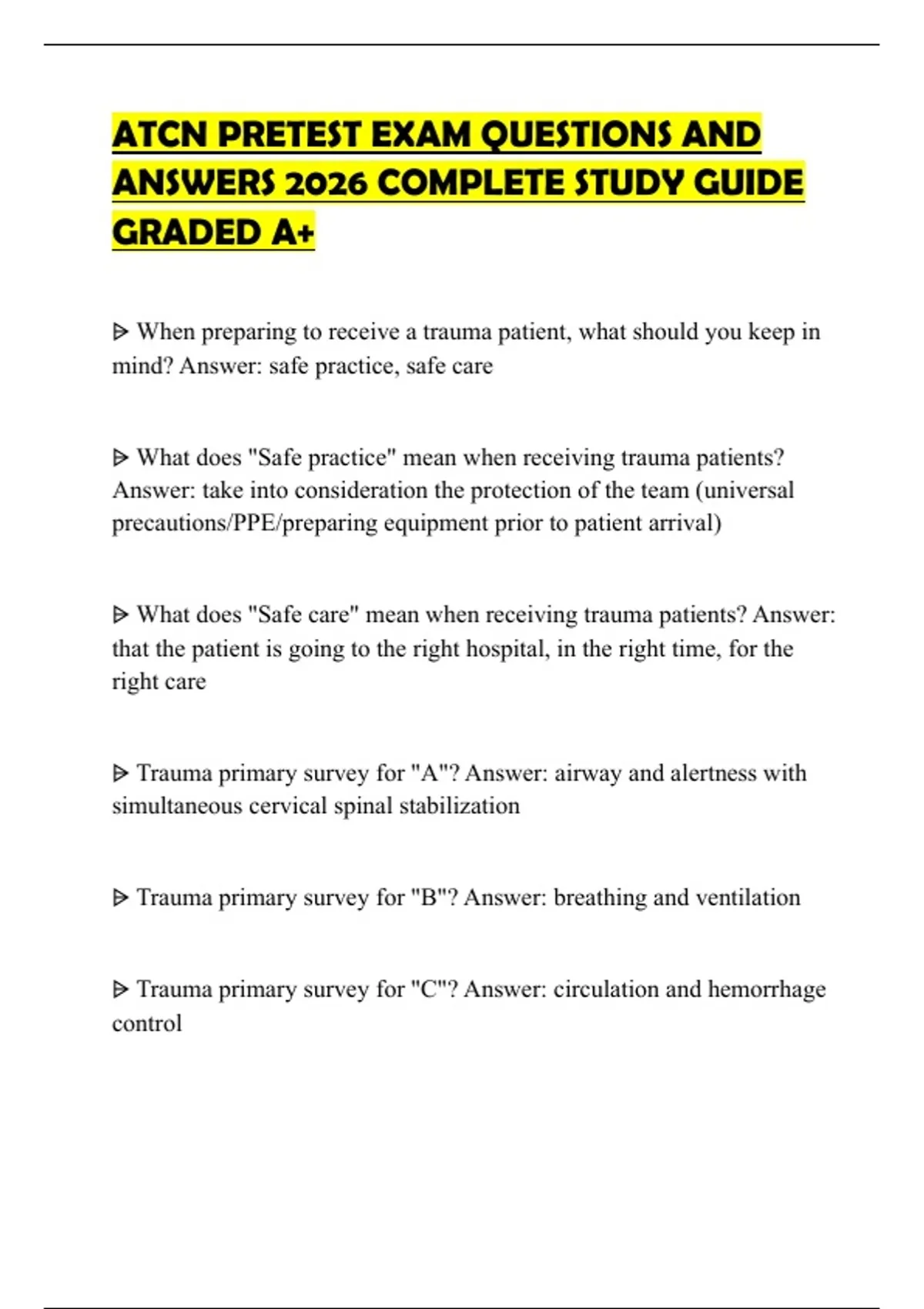 ATCN PRETEST EXAM QUESTIONS AND ANSWERS 2026 COMPLETE STUDY GUIDE GRADED A+