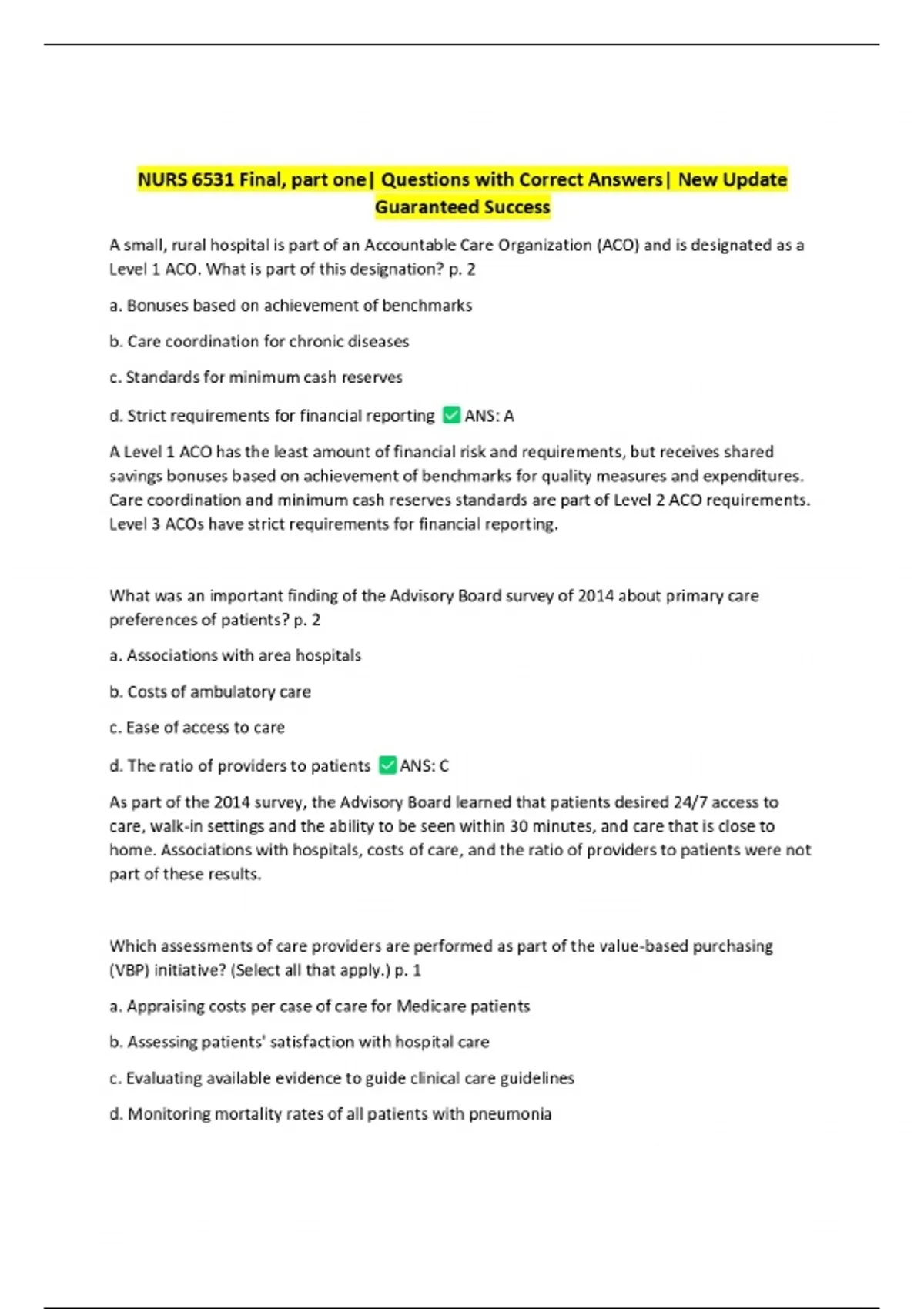NURS 6531 Final, part one| Questions with Correct Answers| New Update Guaranteed Success
