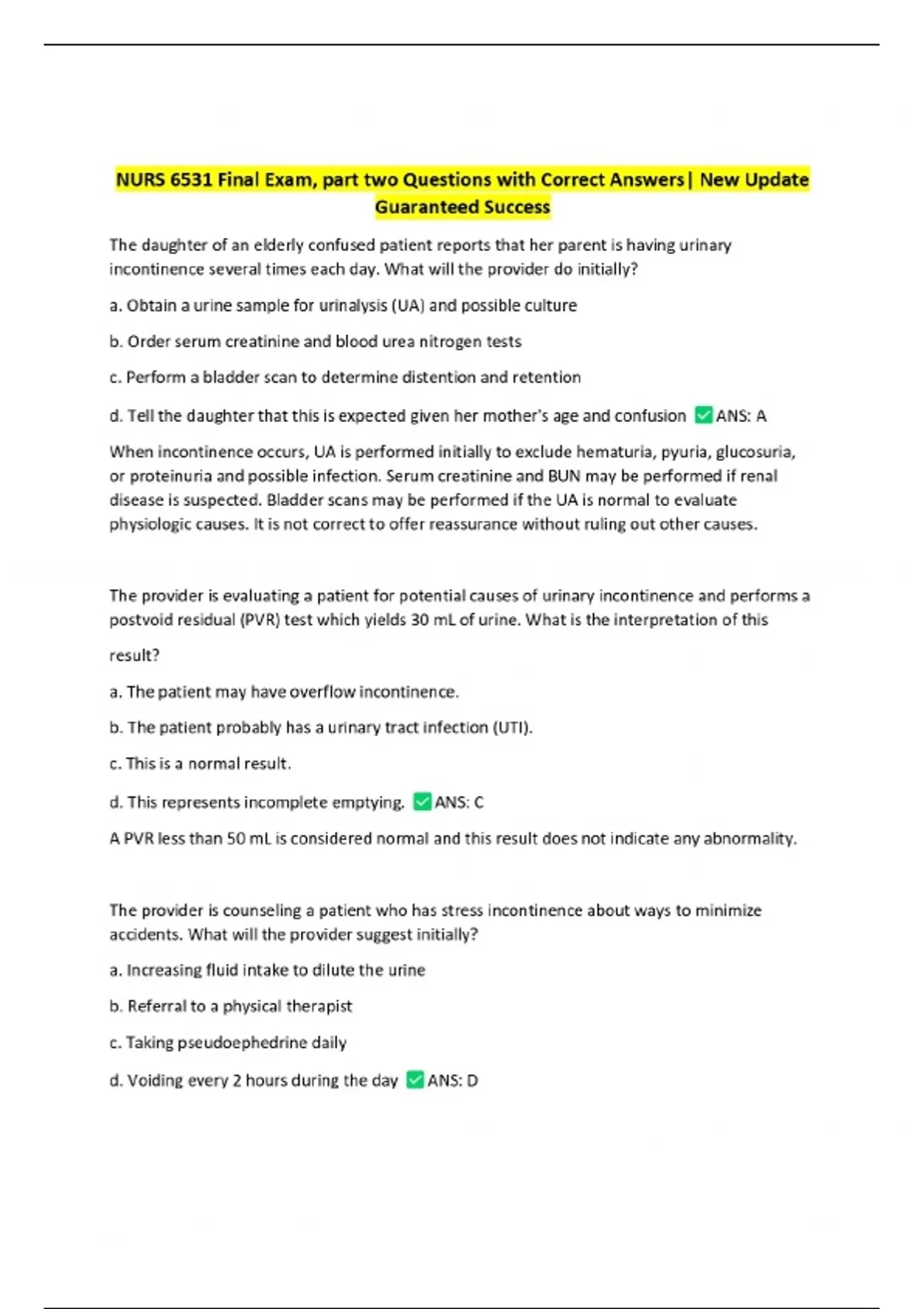 NURS 6531 Final Exam, part two Questions with Correct Answers| New Update Guaranteed Success
