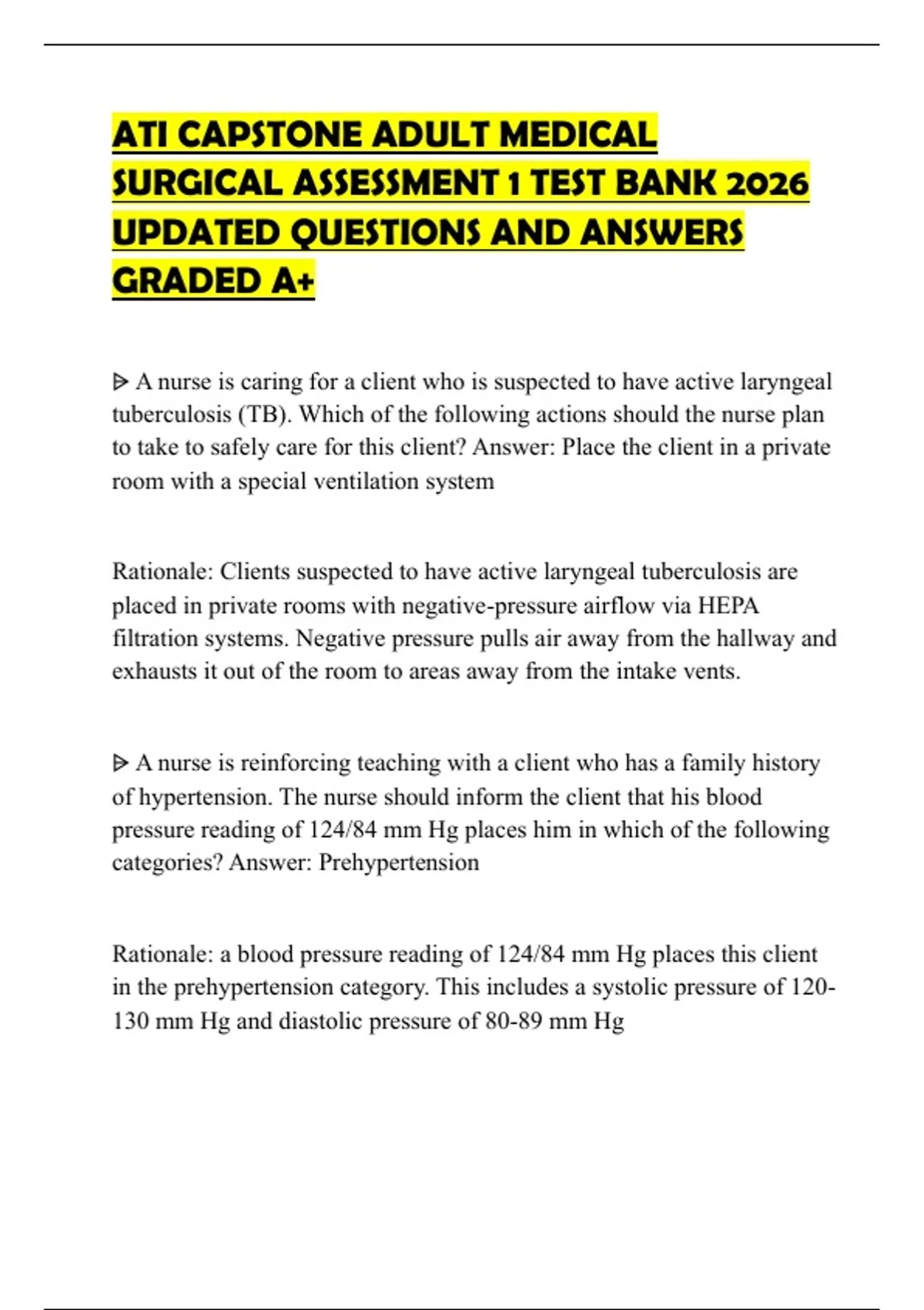 SURGICAL ASSESSMENT 1 TEST BANK 2026
