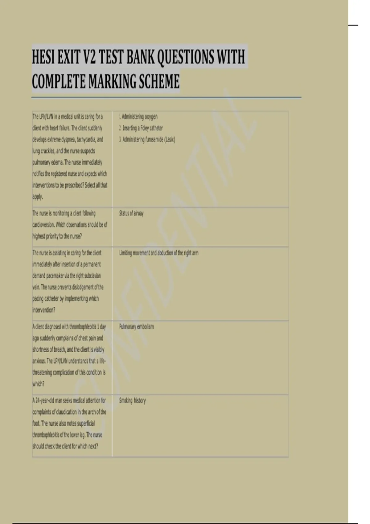 Download the complete HESI Exit V2 test bank with answers & marking scheme. Prepare for nursing exams with practice questions on cardiac care, assessment, and more