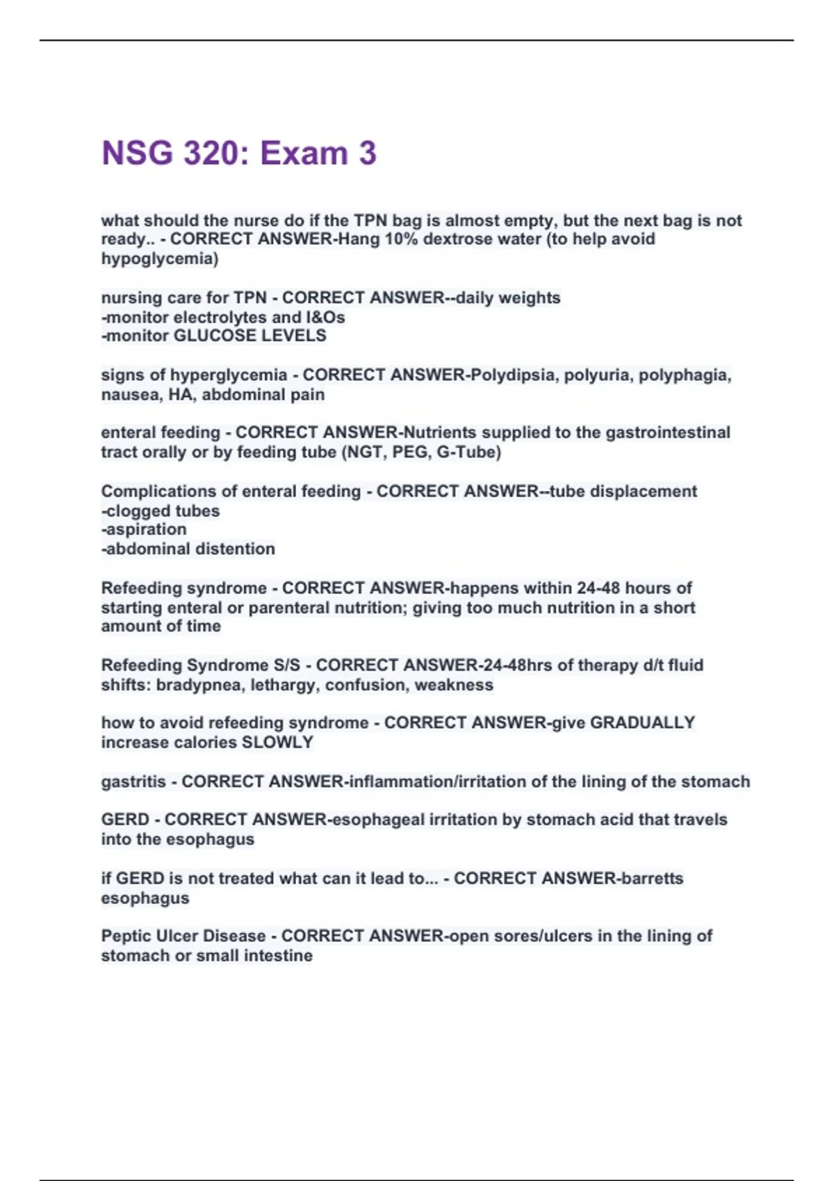 patients receiving TPN are at high risk for - CORRECT ANSWER-hyper or