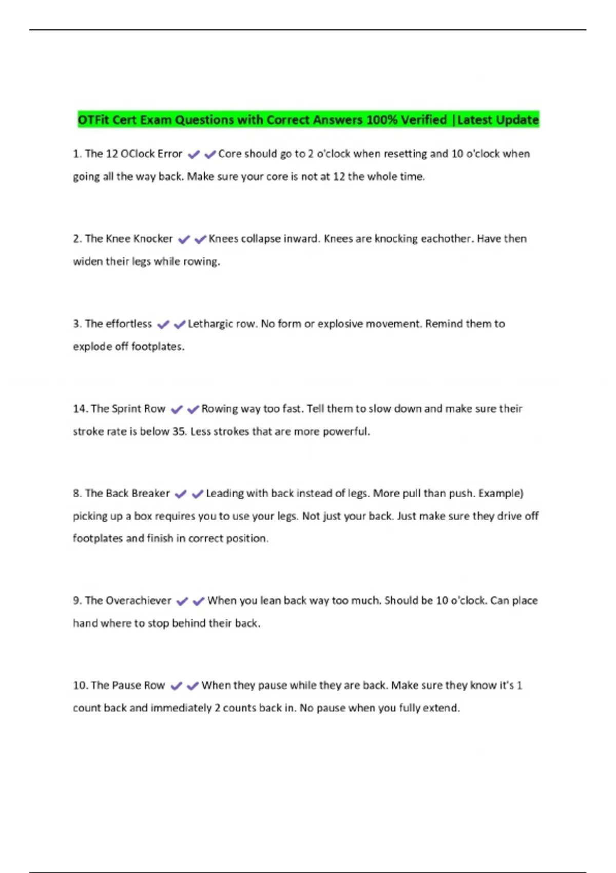 OTFit Cert Exam Questions with Correct Answers 100% Verified |Latest Update