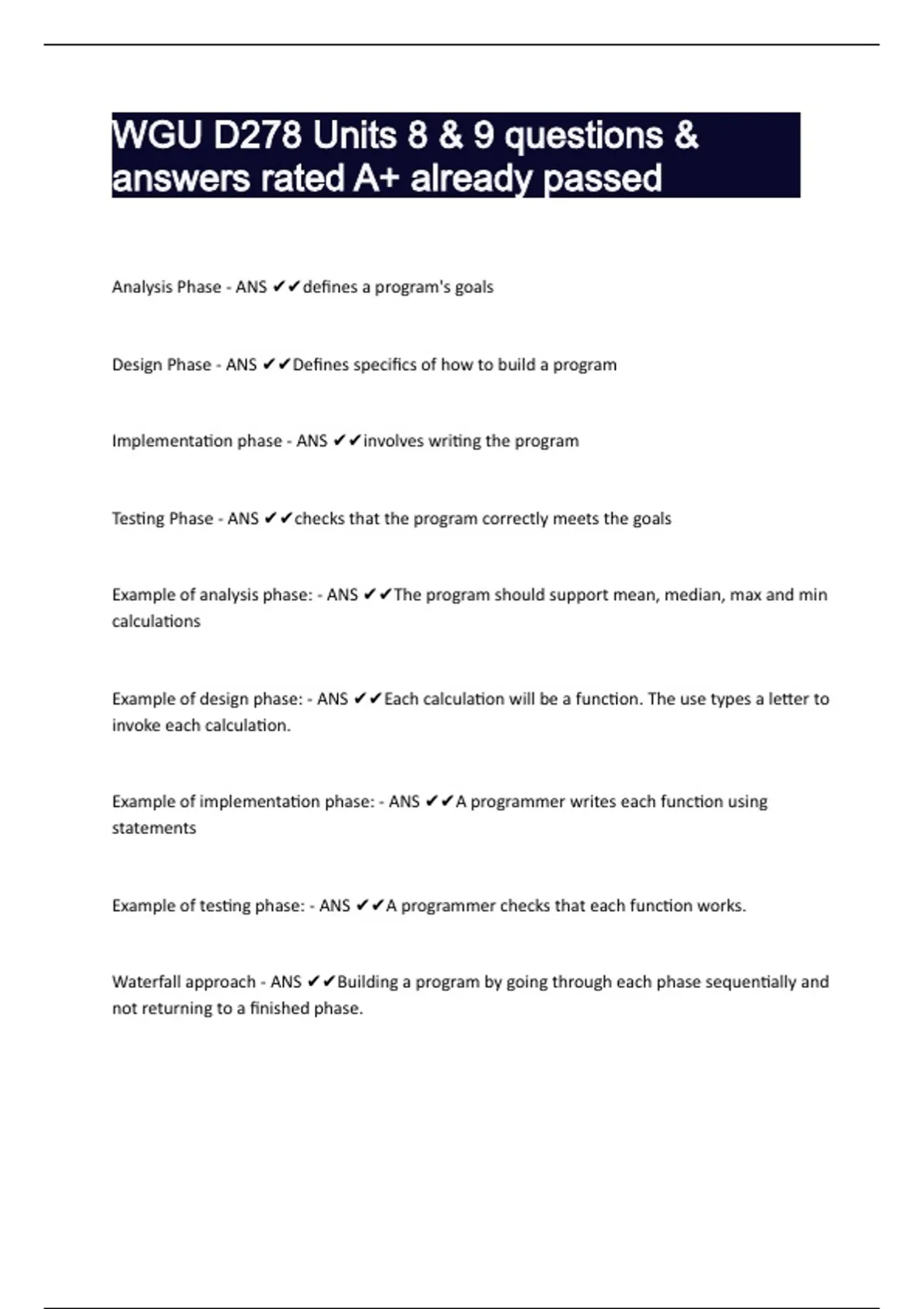 WGU D278 Units 8 & 9 questions & answers rated A+ already passed