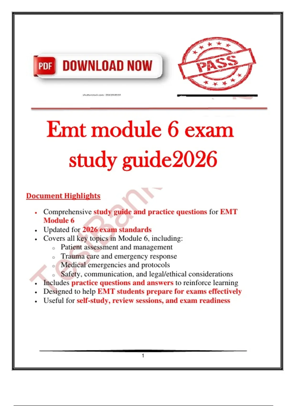 This document is a comprehensive study guide for EMT Module 6, updated for 2026 exam standards. It includes practice questions and answers to help students prepare for EMT Module 6 exams effectively. Topics covered include patient assessment, trauma care, medical emergencies, emergency protocols, safety procedures, and legal/ethical considerations.