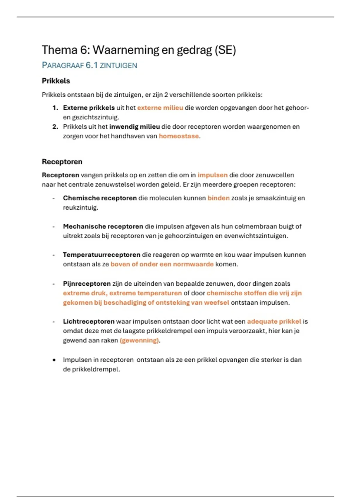 naar het centrale zenuwstelsel worden geleid. Er zijn meerdere groepen receptoren:
