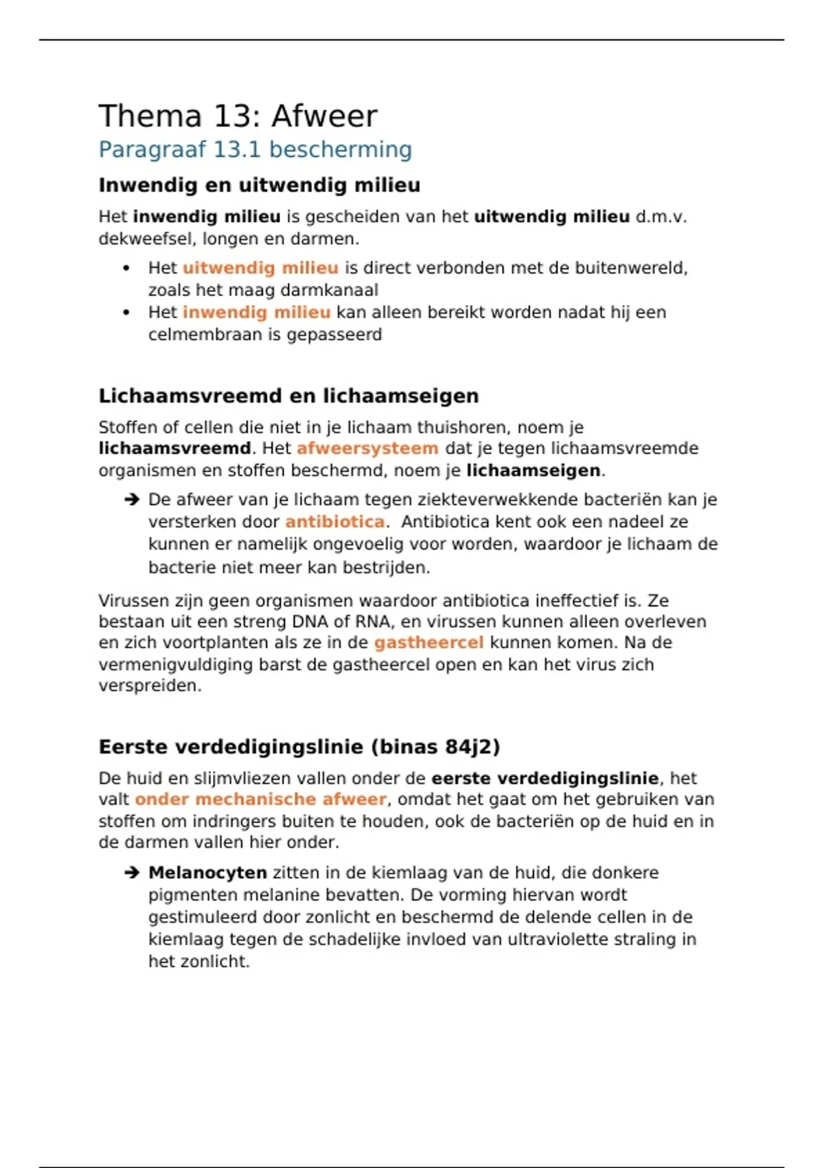 Samenvatting (School)examenstof Biologie Havo 5 - Thema 13: Afweer