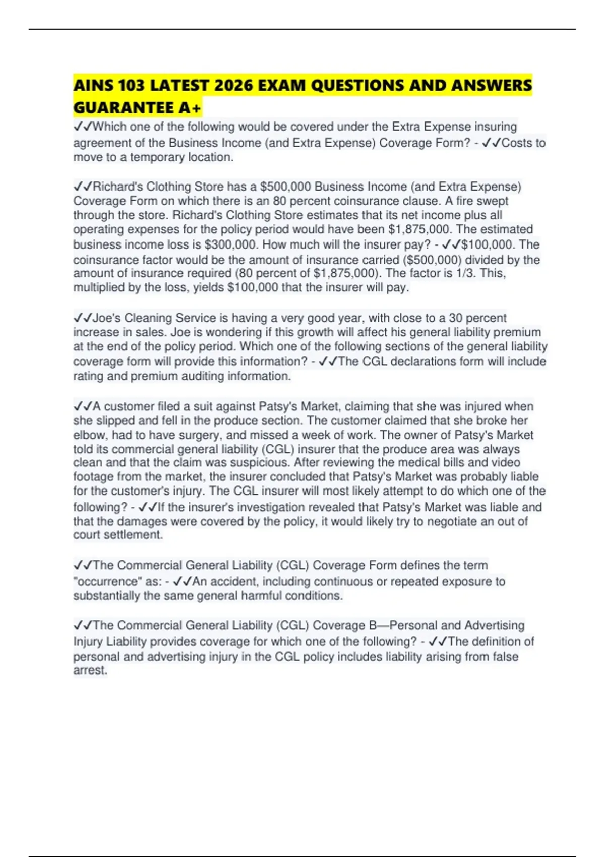 AINS 103 LATEST 2026 EXAM QUESTIONS AND ANSWERS GUARANTEE A+