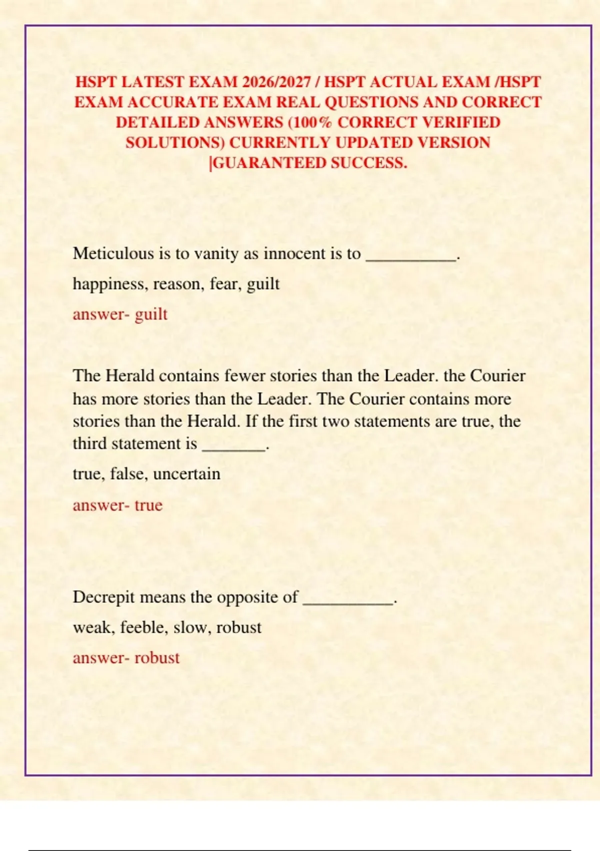 DETAILED ANSWERS (100% CORRECT VERIFIED