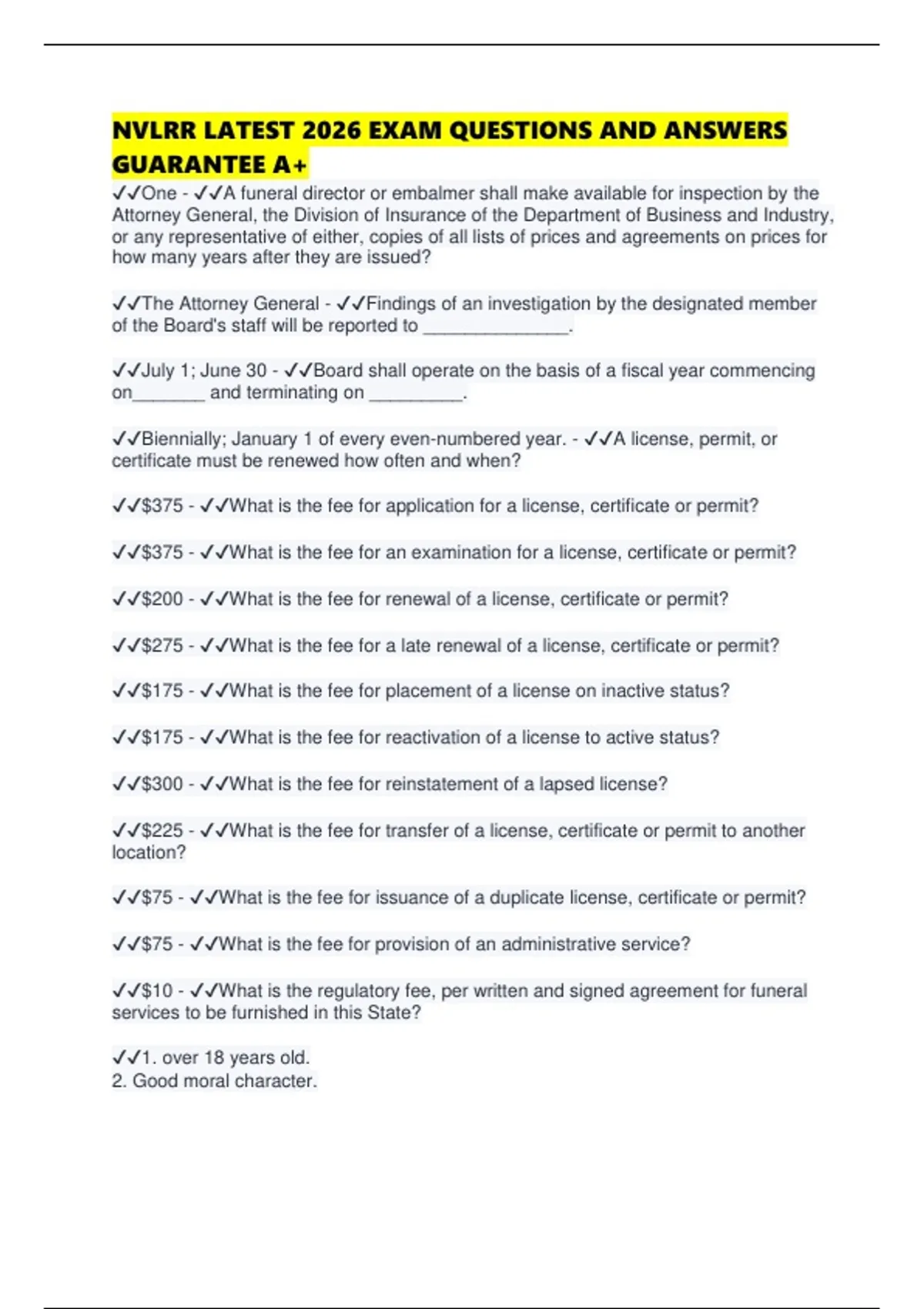 ✔✔$375 - ✔✔What is the fee for an examination for a license, certificate or permit?