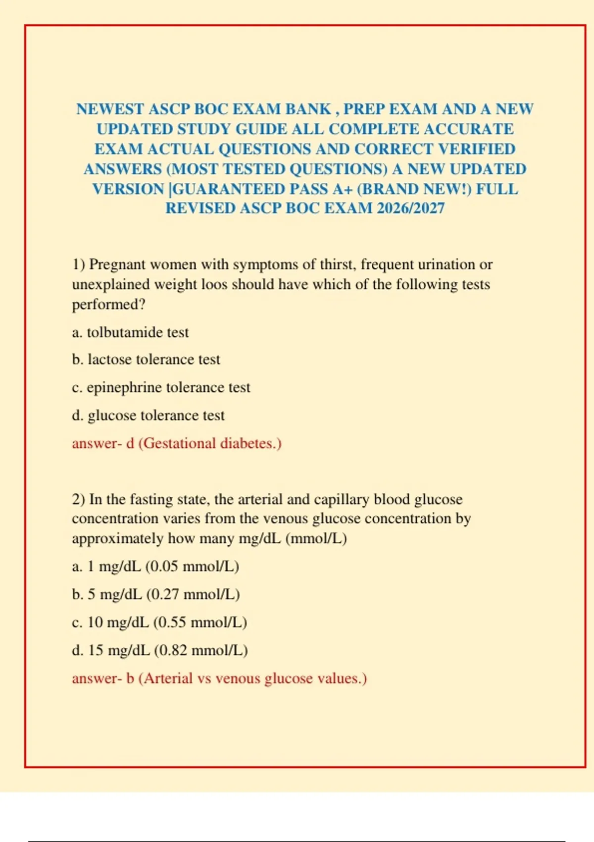 NEWEST ASCP BOC EXAM BANK , PREP EXAM AND A NEW UPDATED STUDY GUIDE ALL COMPLETE ACCURATE EXAM ACTUAL QUESTIONS AND CORRECT VERIFIED ANSWERS (MOST TESTED QUESTIONS) A NEW UPDATED VERSION |GUARANTEED PASS A+ (BRAND NEW!) FULL REVISED ASCP BOC EXAM 2026/2027