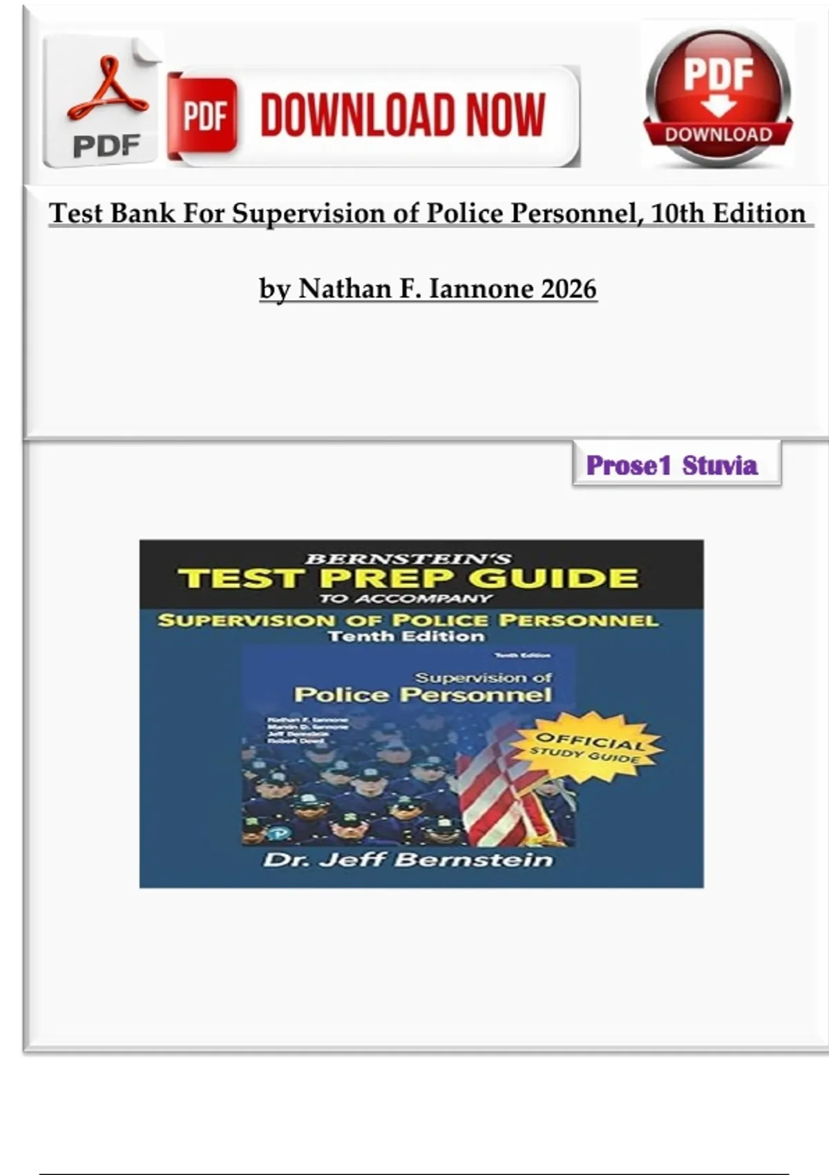 Test Bank For Supervision of Police Personnel, 10th Edition by Nathan F. Iannone 2026