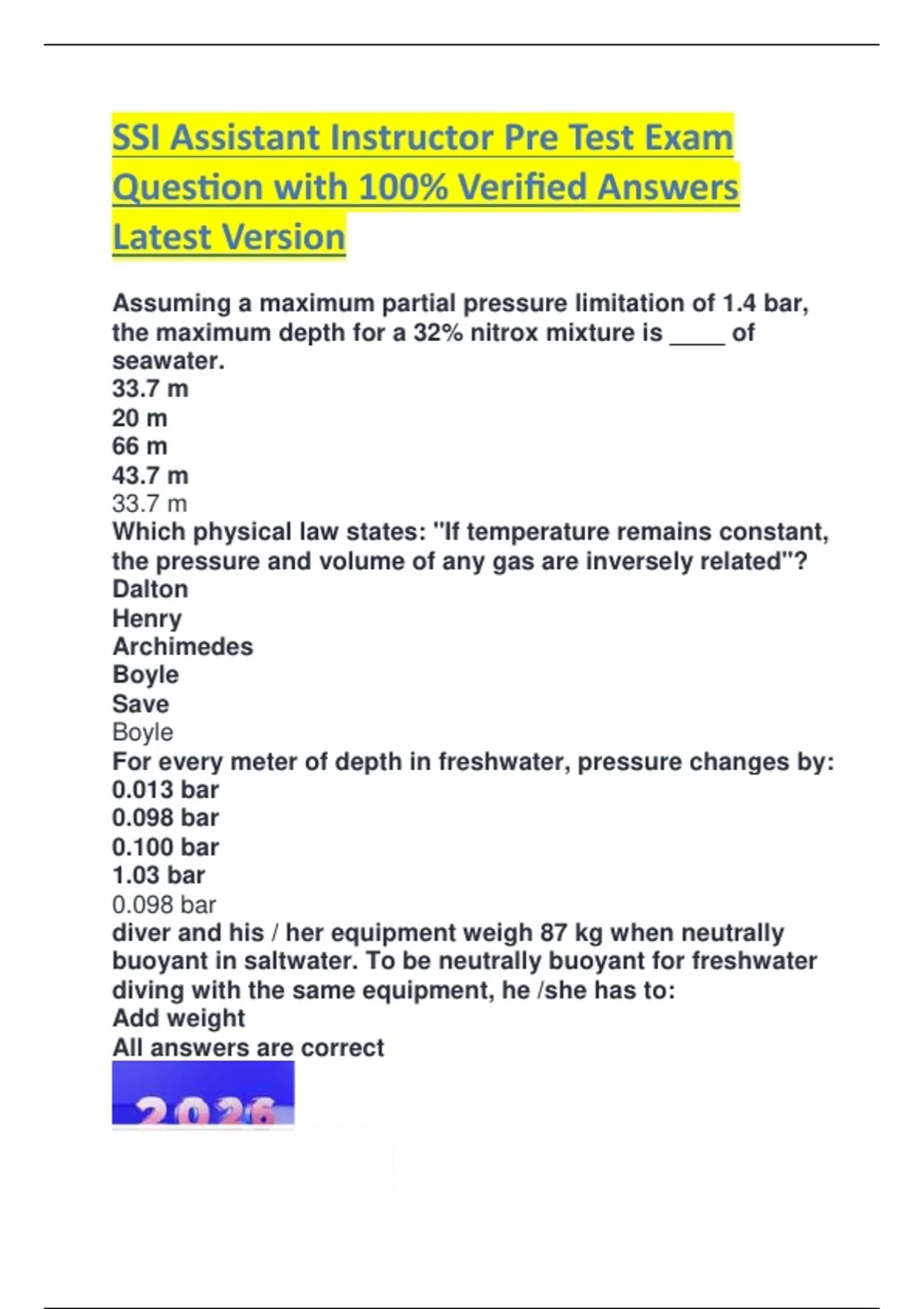 SSI Assistant Instructor Pre Test Exam