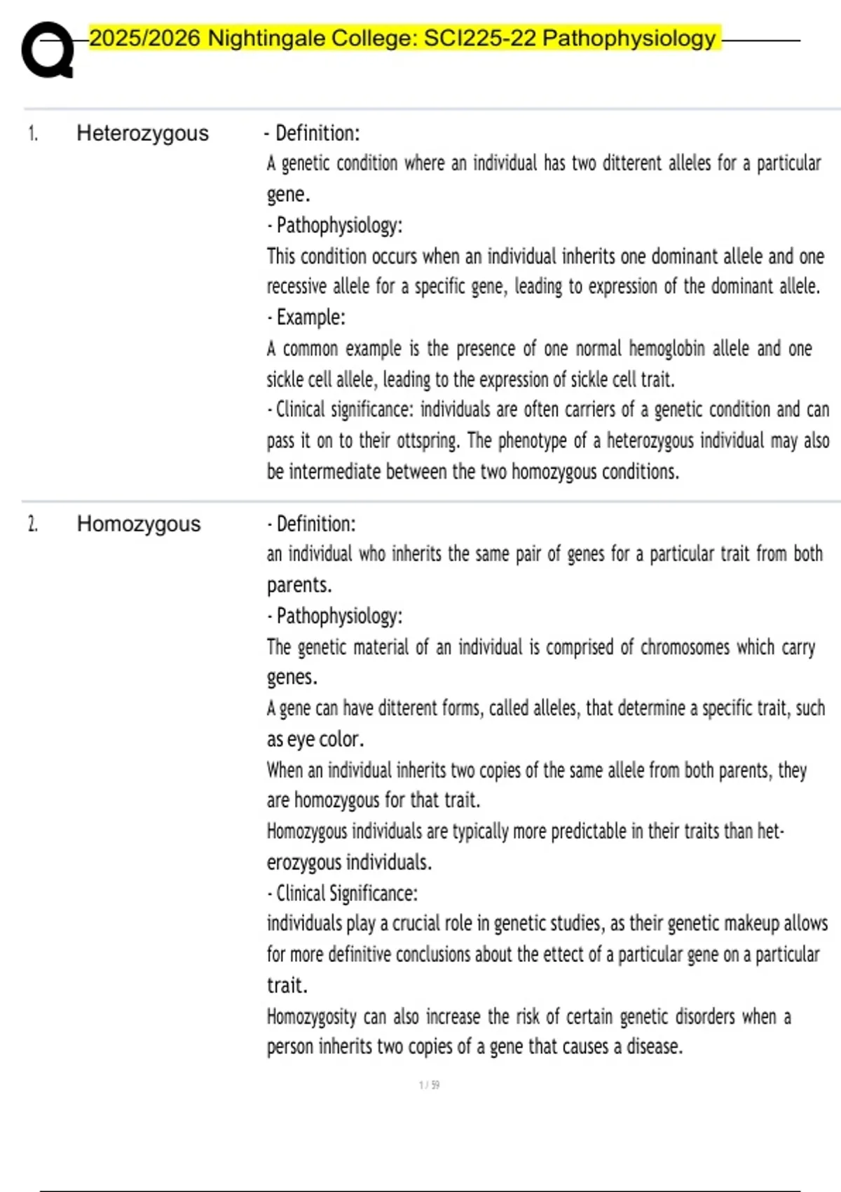 2025/2026 Nightingale College: SCI225-22 Pathophysiology
