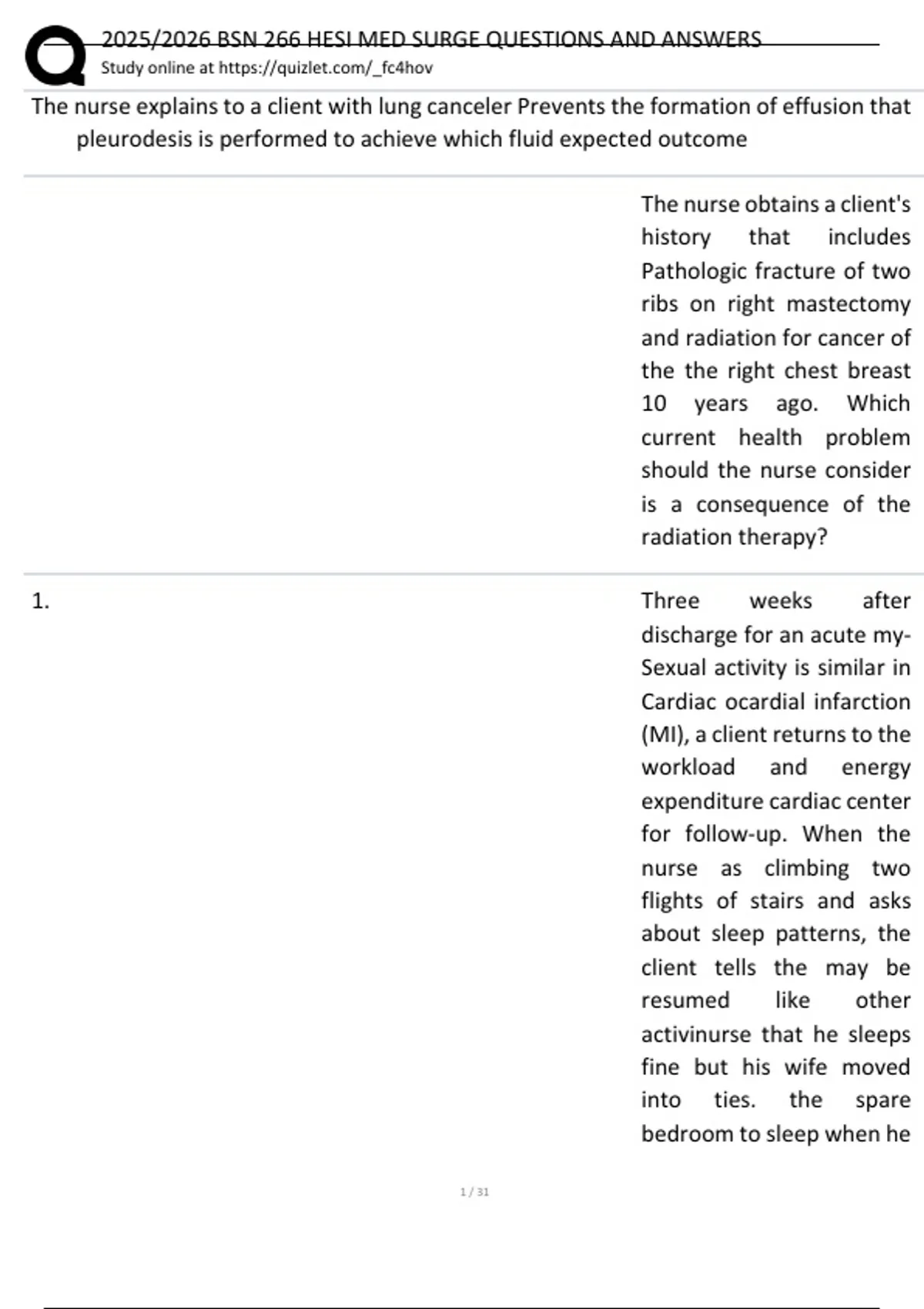 2025/2026 BSN 266 HESI MED SURGE QUESTIONS AND ANSWERS