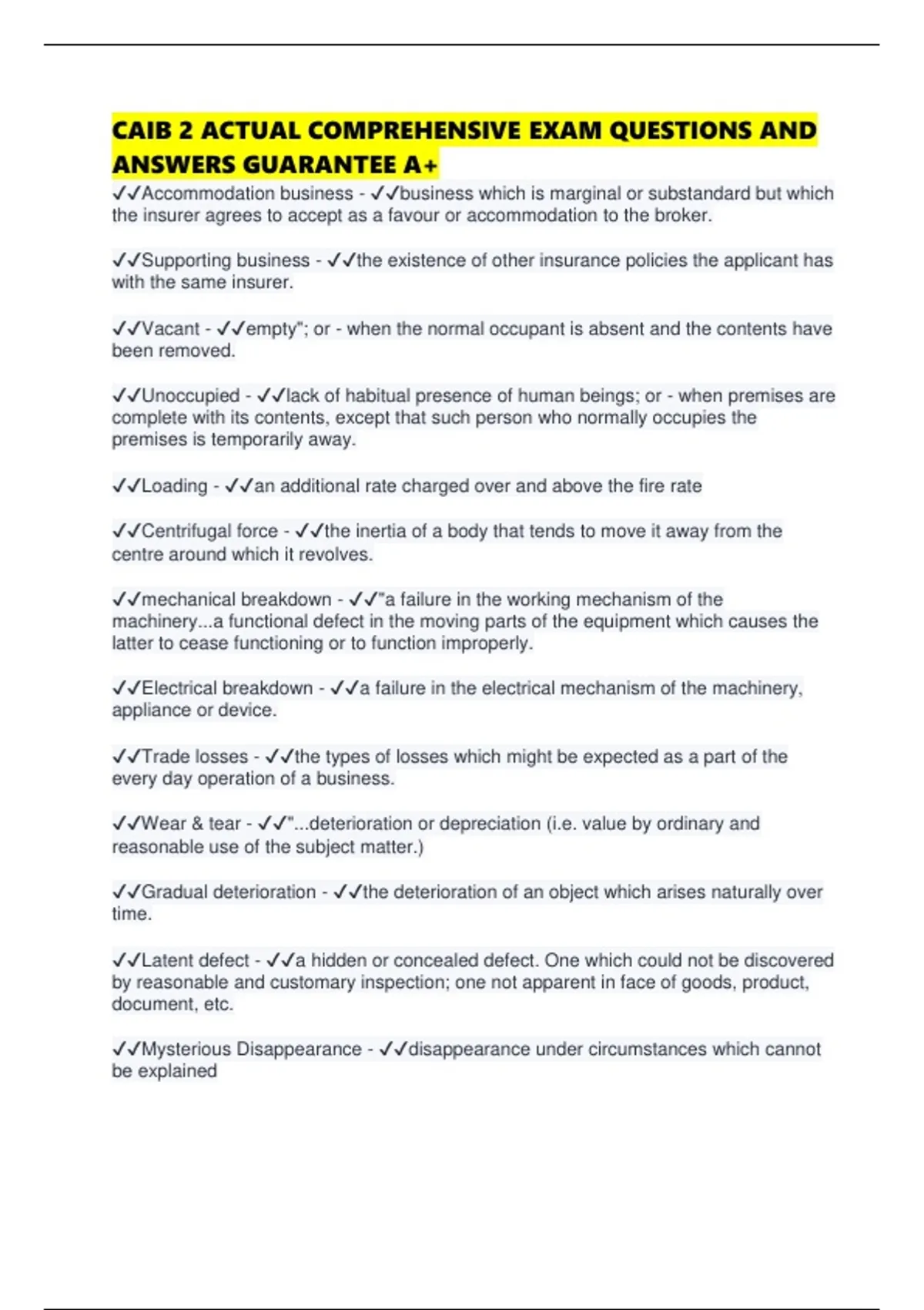 CAIB 2 ACTUAL COMPREHENSIVE EXAM QUESTIONS AND ANSWERS GUARANTEE A+