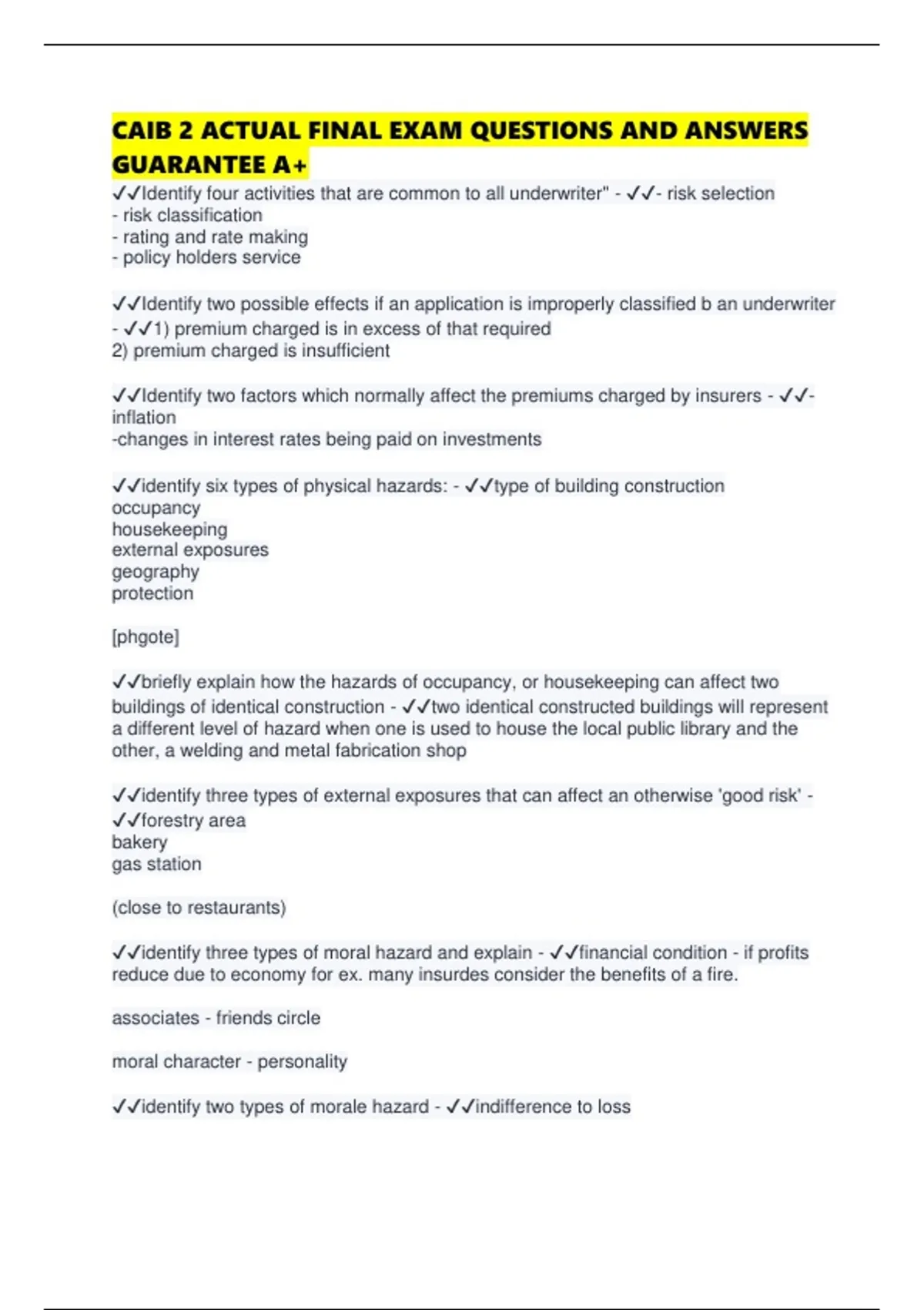 CAIB 2 ACTUAL FINAL EXAM QUESTIONS AND ANSWERS GUARANTEE A+