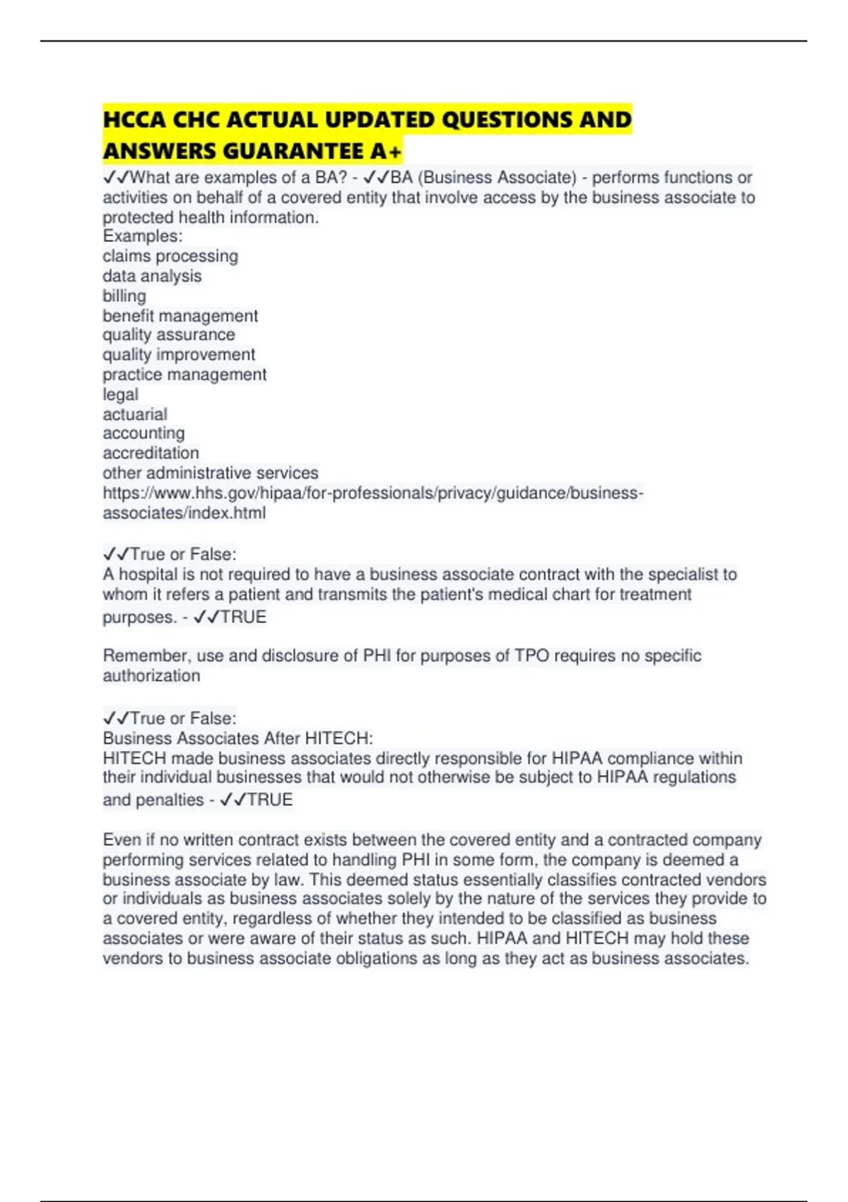 HCCA CHC ACTUAL UPDATED QUESTIONS AND