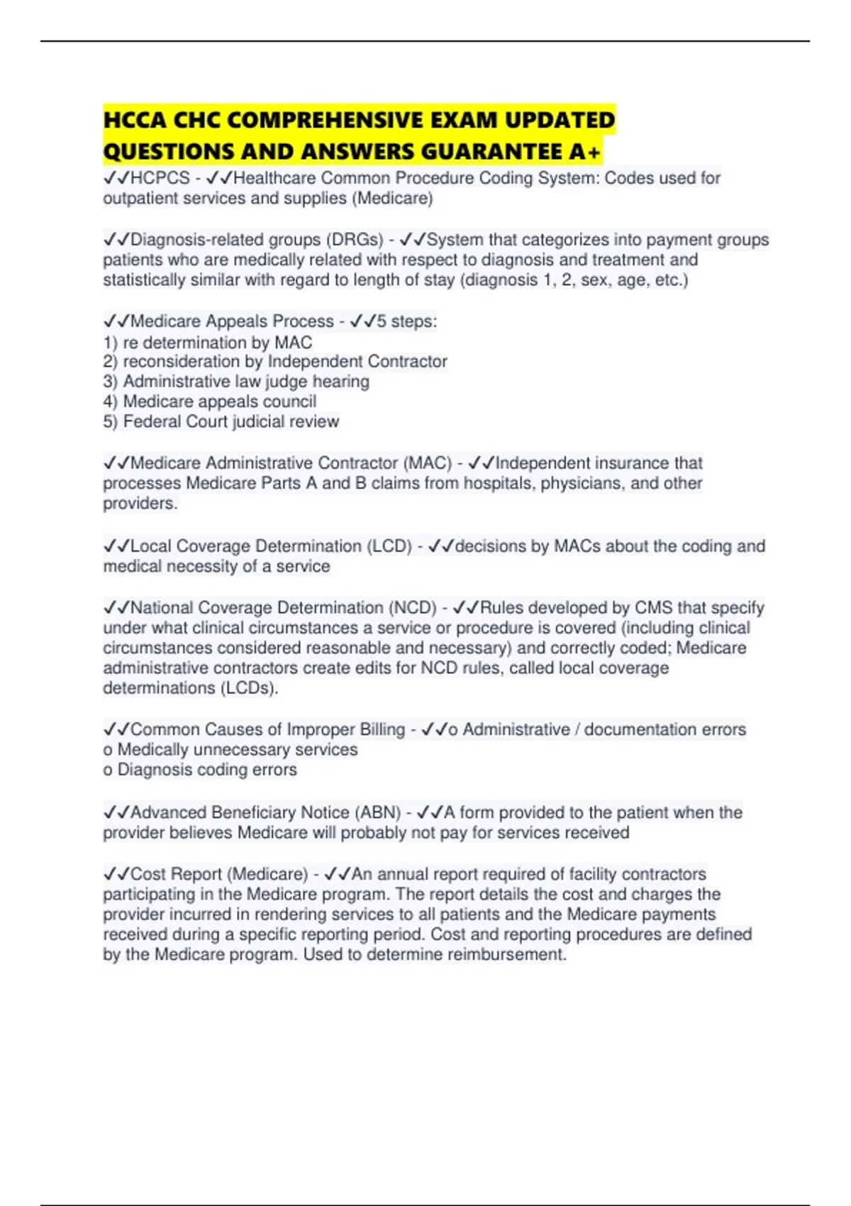 ✔✔Diagnosis-related groups (DRGs) - ✔✔System that categorizes into payment groups
