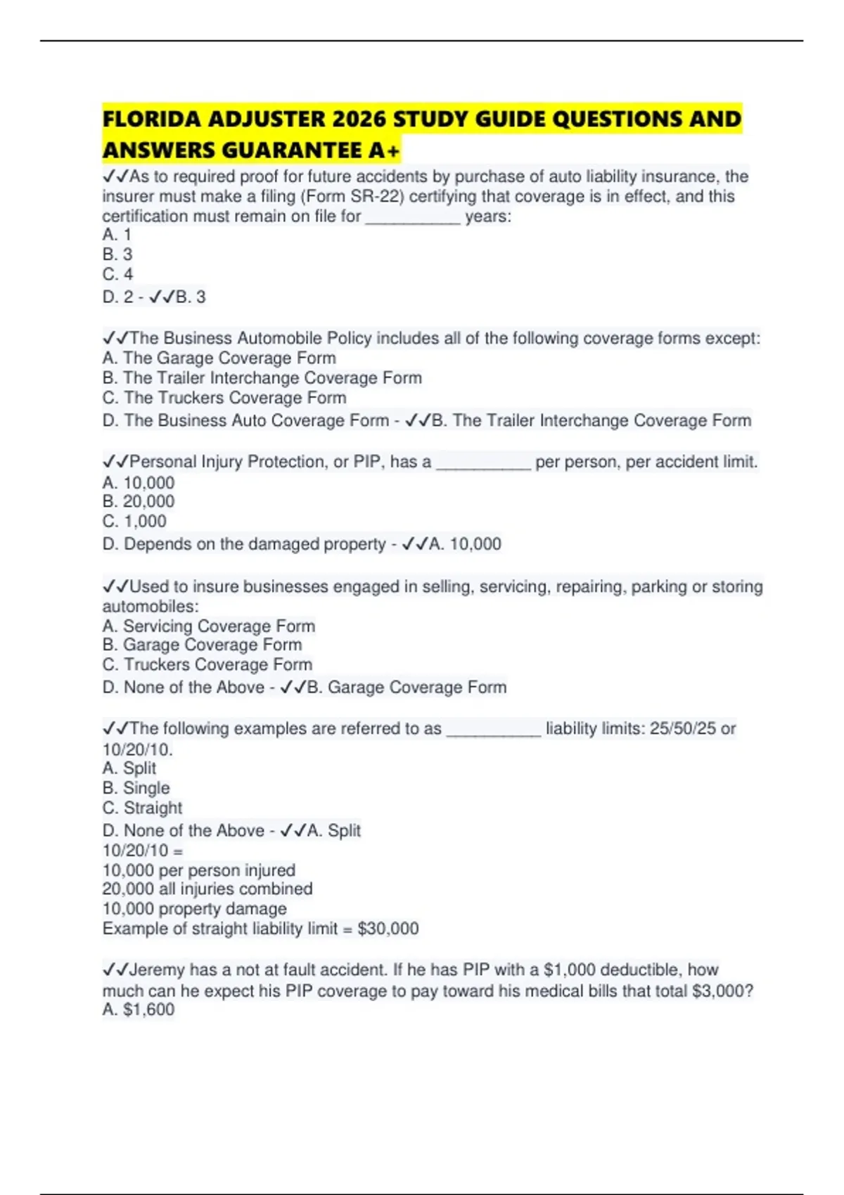 D. None of the Above - ✔✔B. Garage Coverage Form