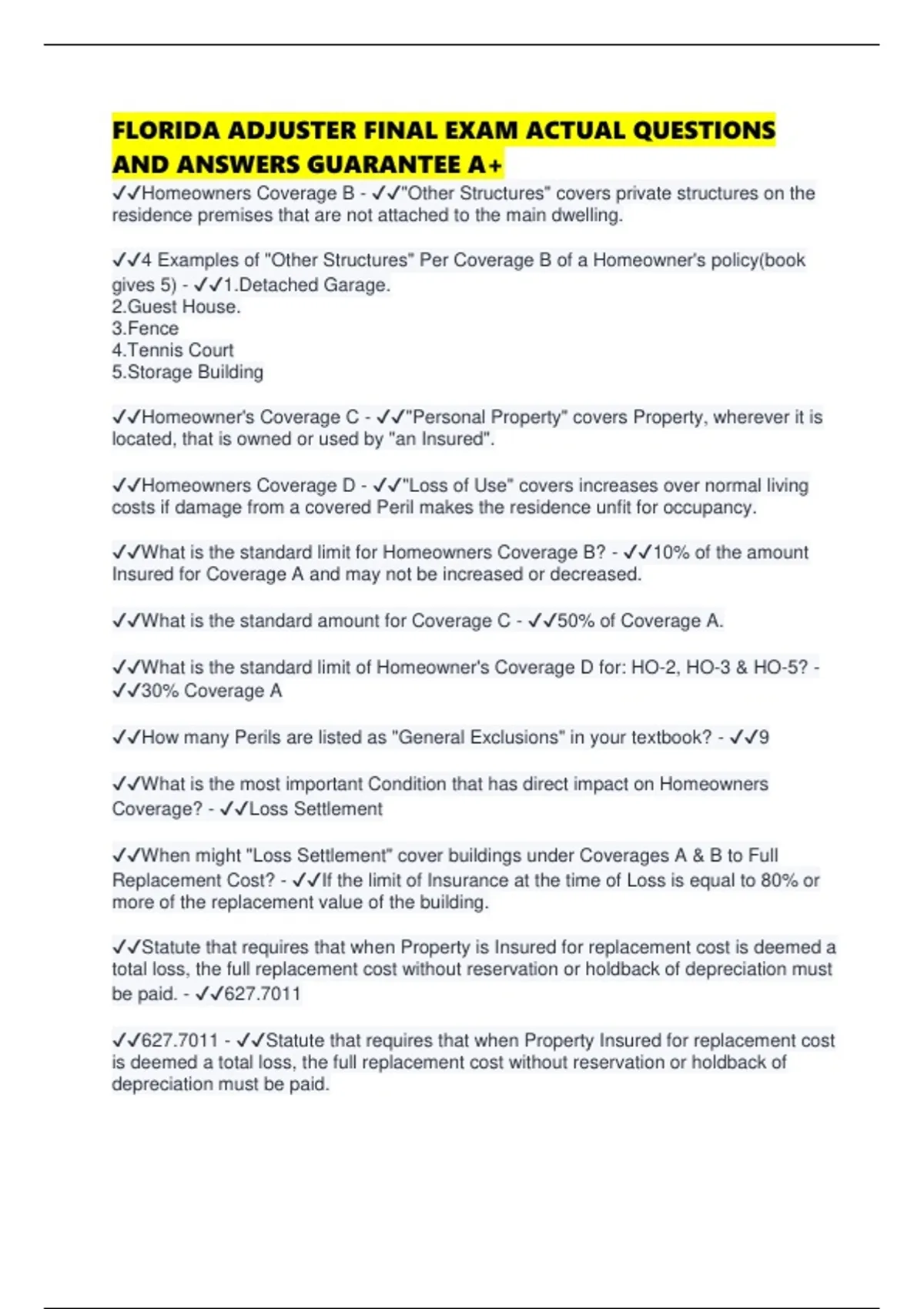 ✔✔4 Examples of "Other Structures" Per Coverage B of a Homeowner's policy(book