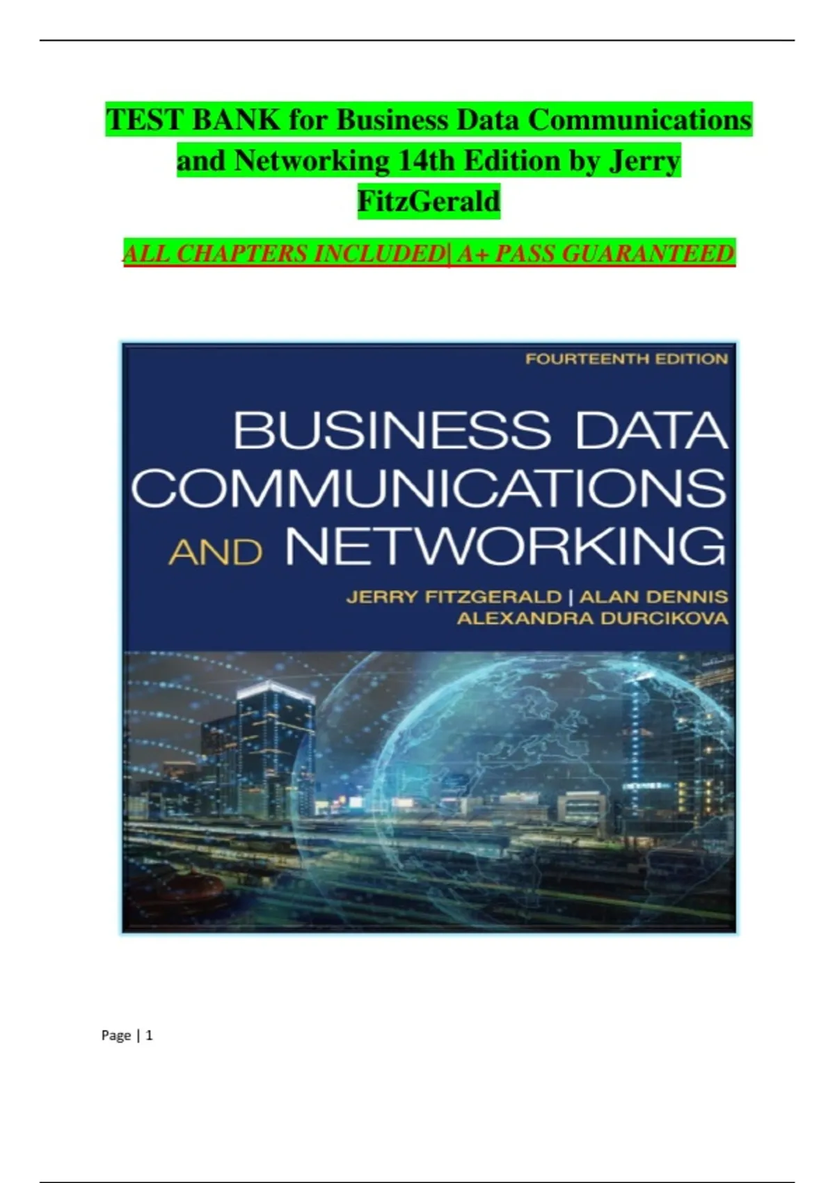 Test Bank For Business Data Communications and Networking 14th Edition by Jerry FitzGerald ||ISBN:9781119702849