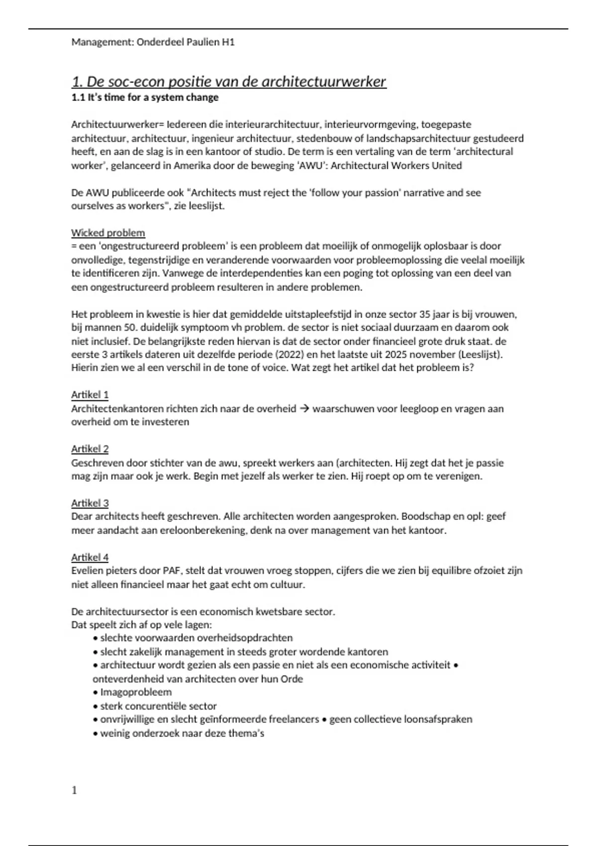 1. De soc-econ positie van de architectuurwerker