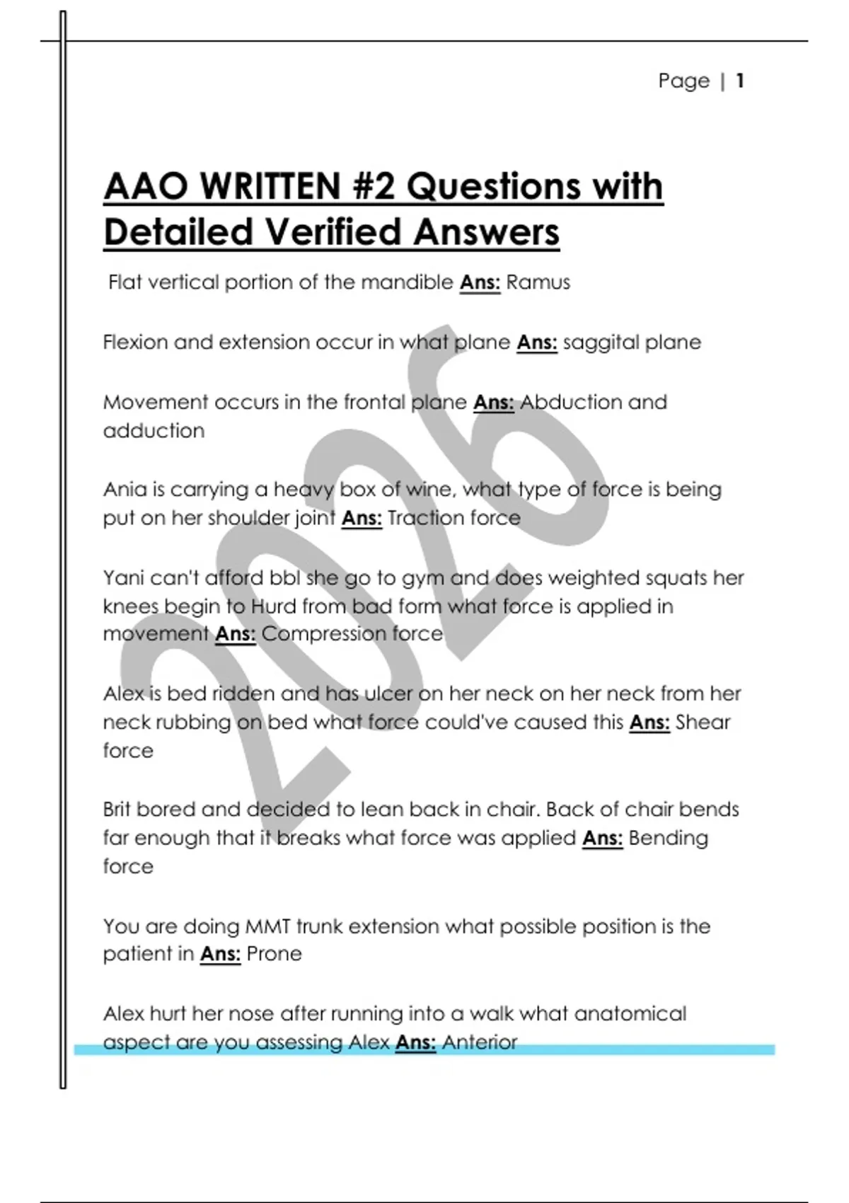 AAO WRITTEN #2 Questions with