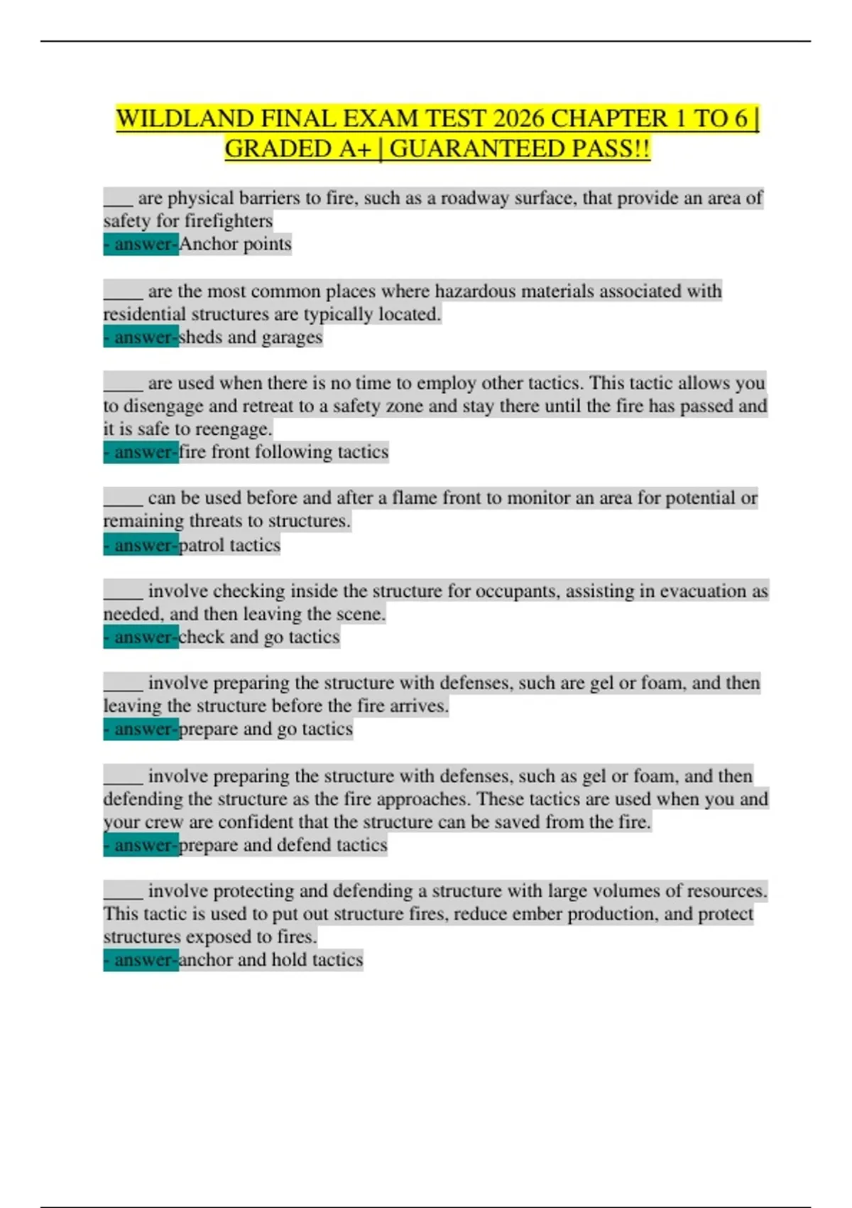 WILDLAND FINAL EXAM TEST 2026 CHAPTER 1 TO 6 |