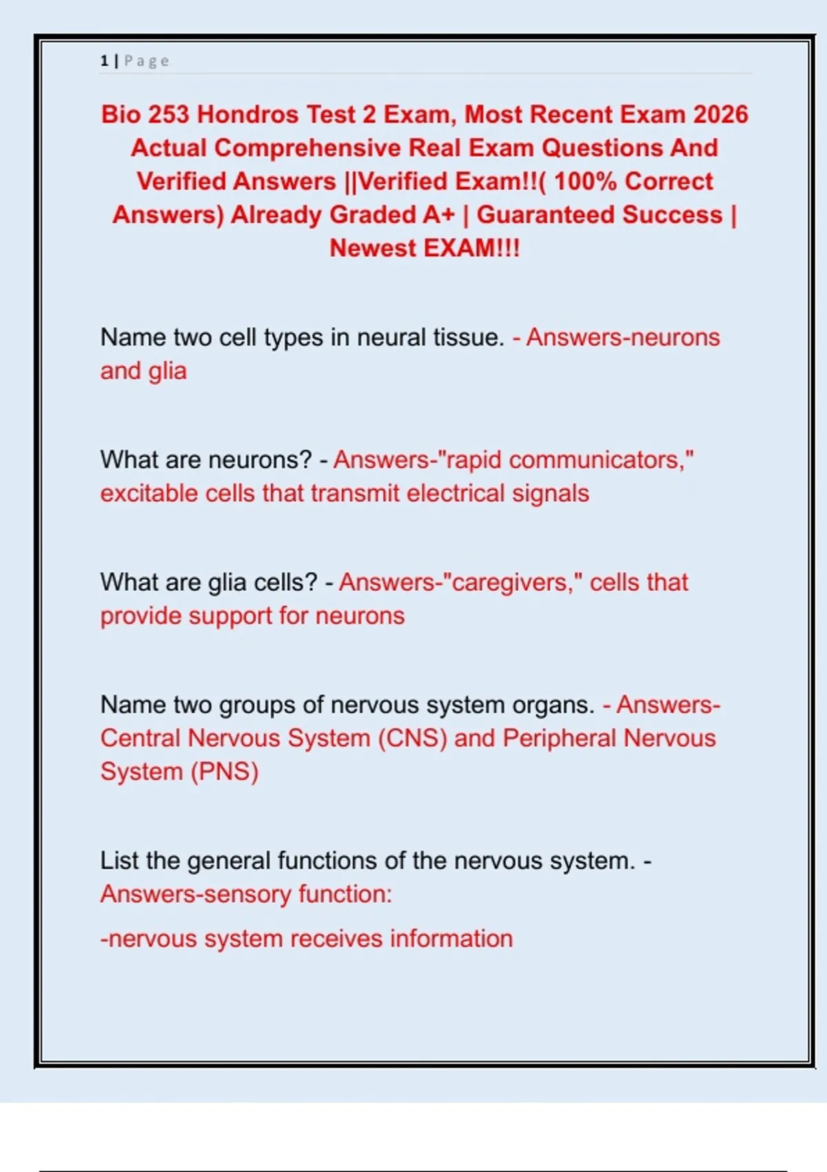 Bio 253 Hondros Test 2 Exam, Most Recent Exam 2026